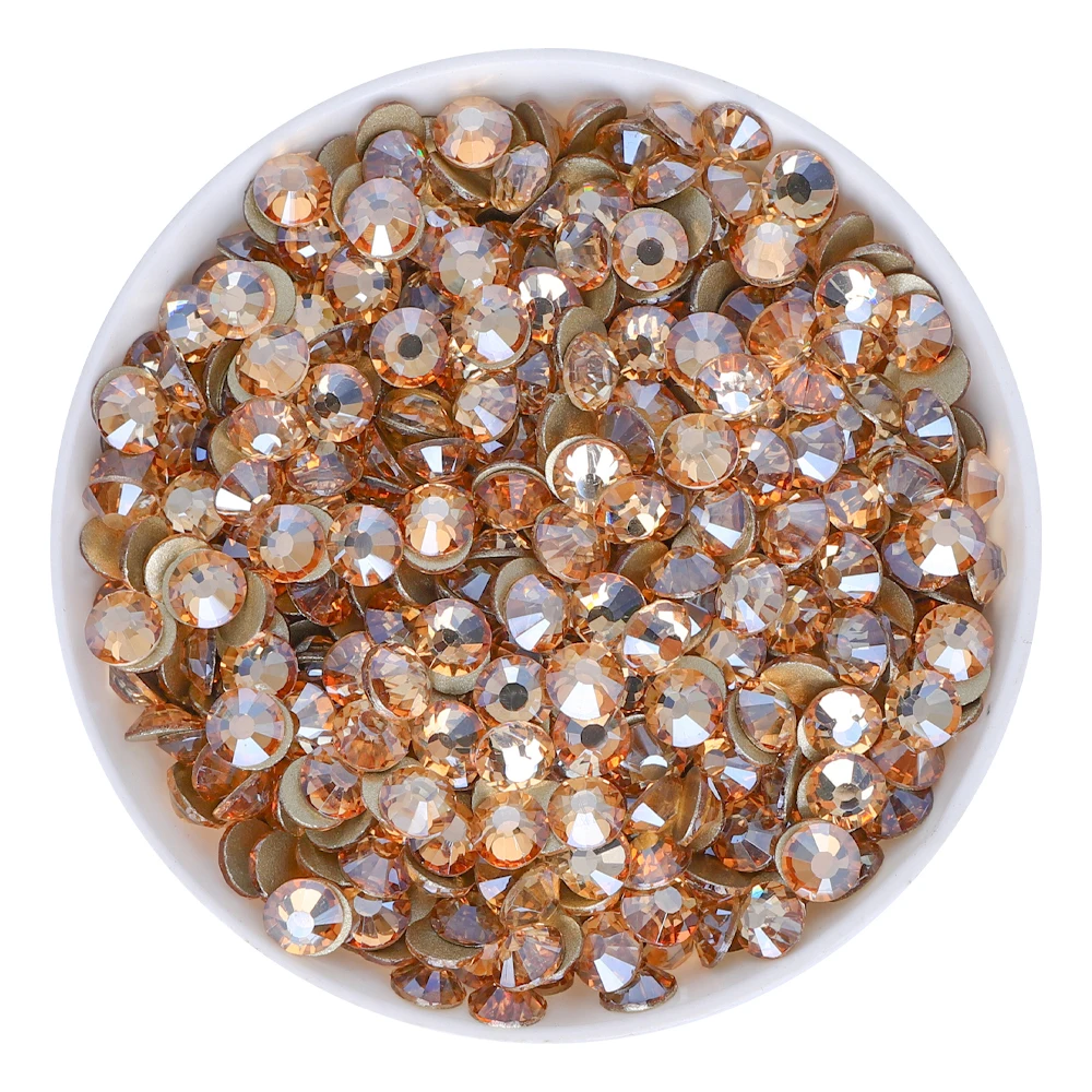 Top SS3-SS60 Glass Flatback Rhinestone Golden Shadow Crystals Stones Golden Bottom Nail Gems DIY Decoration Accessories for Art