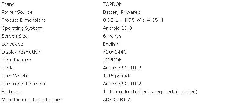 【Warm Notice】Android 10.0 based TOPDON auto scanners comes with 1-year warranty, 30-days return & replacement policy. For any issues you may have before or after the purchase, email us via Ebay Message, Monday-Friday 9:00AM-6PM Eastern Time. If you are not pleased with your AD800BT 2 and choose to return it, please kindly mark it unsellable to avoid an used one is resold again to other customers. Appreciate very much!