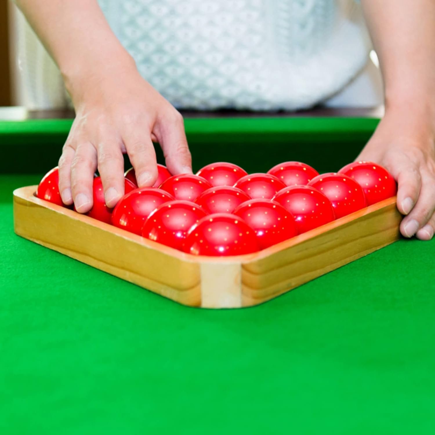 The corners of the billiard ball racks are designed with reinforced and thicker hardwood, and the smooth surface will not damage the table cloth, very practical and durable for snooker train.