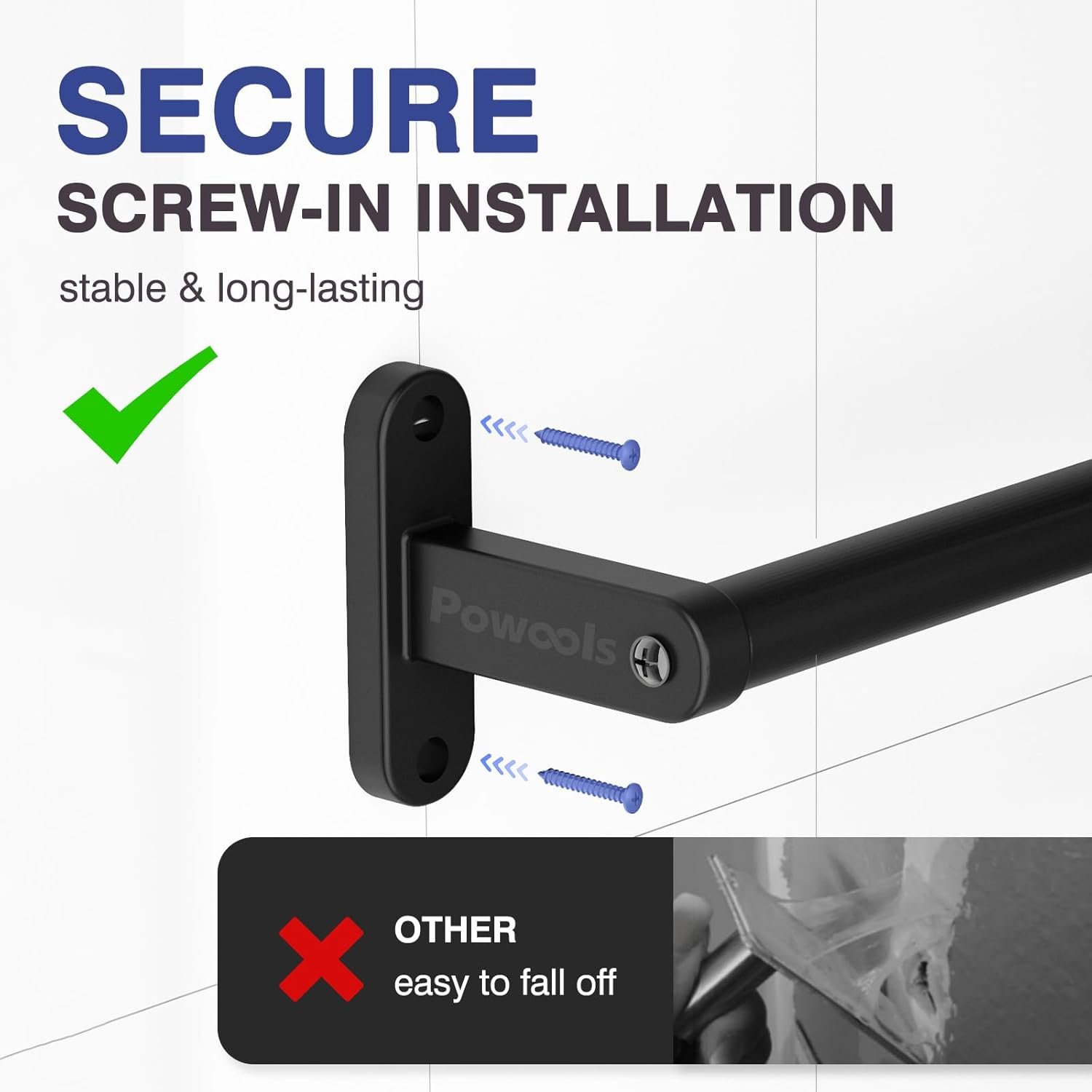 EASY TO INSTALL & MAINTAIN:Each Powools towel rack comes with all necessary mounting hardware and step-by-step instructions for a hassle-free setup. Simply connect the two metal tubes, attach the support bases, mark and drill holes, and secure the rack to the wall using the included screws and anchors. The smooth surface makes cleaning effortless — just a quick wipe keeps it looking brand new.