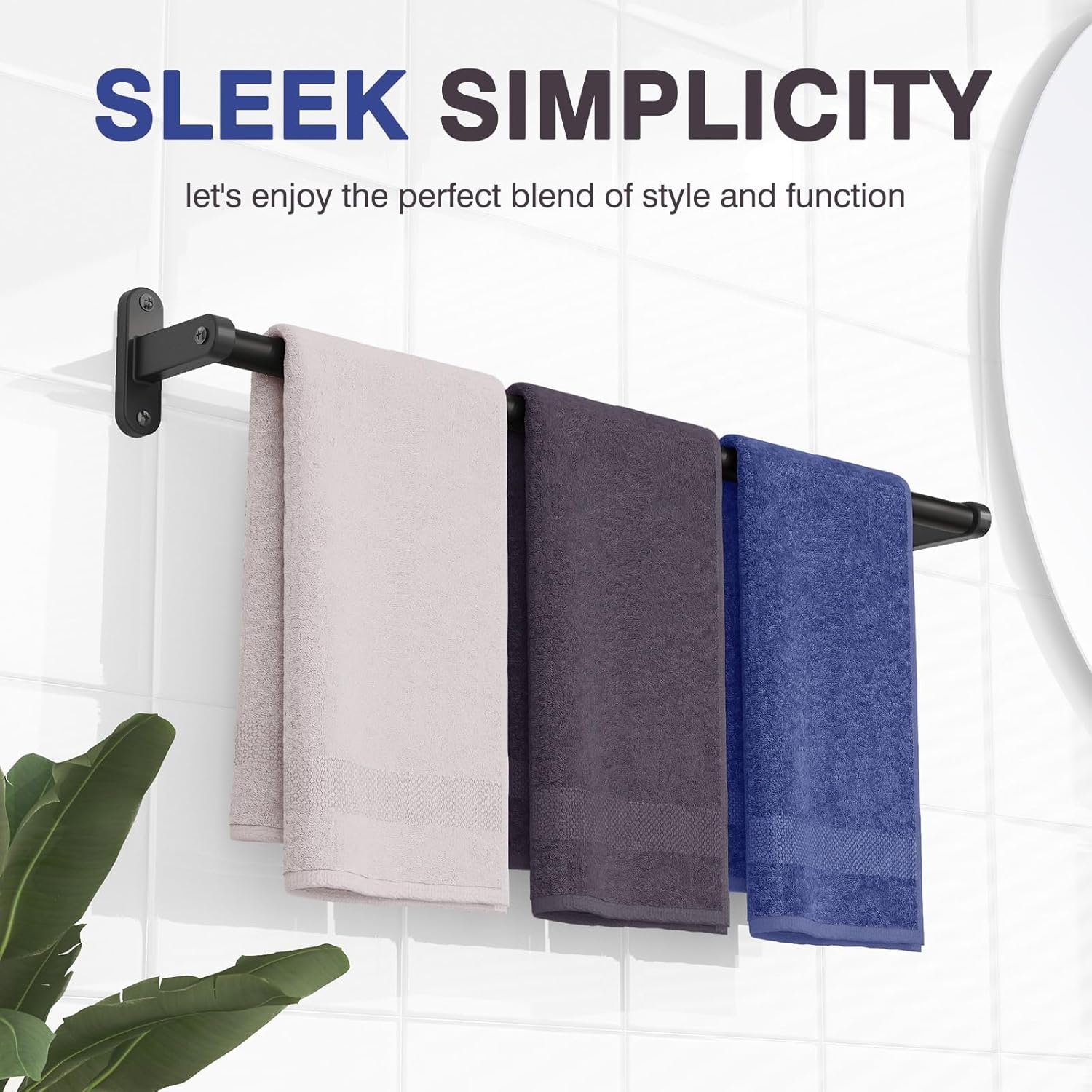 Towel Rack for Bathroom – 24″ Rustproof Towel Holder, Sturdy Towel Bar Wall Mounted, Space-Saving Towel Hanger, Bathroom Accessories, Home Decor, Apparment Essentials, Black