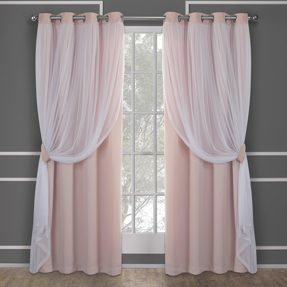 TOWN & COUNTRY LUXE Talia Double Layer Indoor Curtains, Sheer and Room Darkening Blackout, Grommet Top, Energy Efficient, 2-Pack Set, 52″x84″, Rose Blush