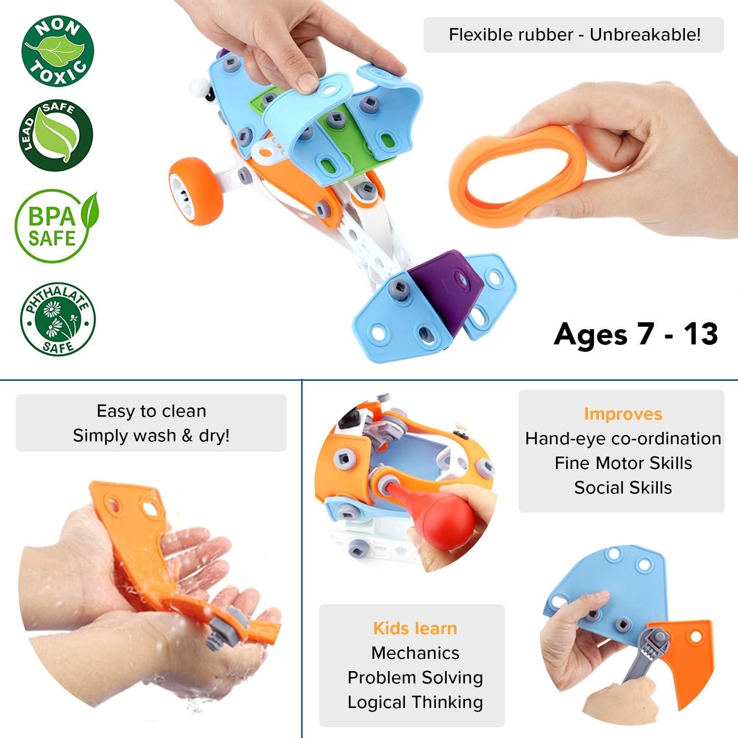 Toy Pal 7in1 STEM Toys for 6 7 8+ Year Old Boys Girls – 163 Pcs Engineering Construction Building Educational Toy for Boys Age 6-8 | STEM Activities Fun Birthday Gift