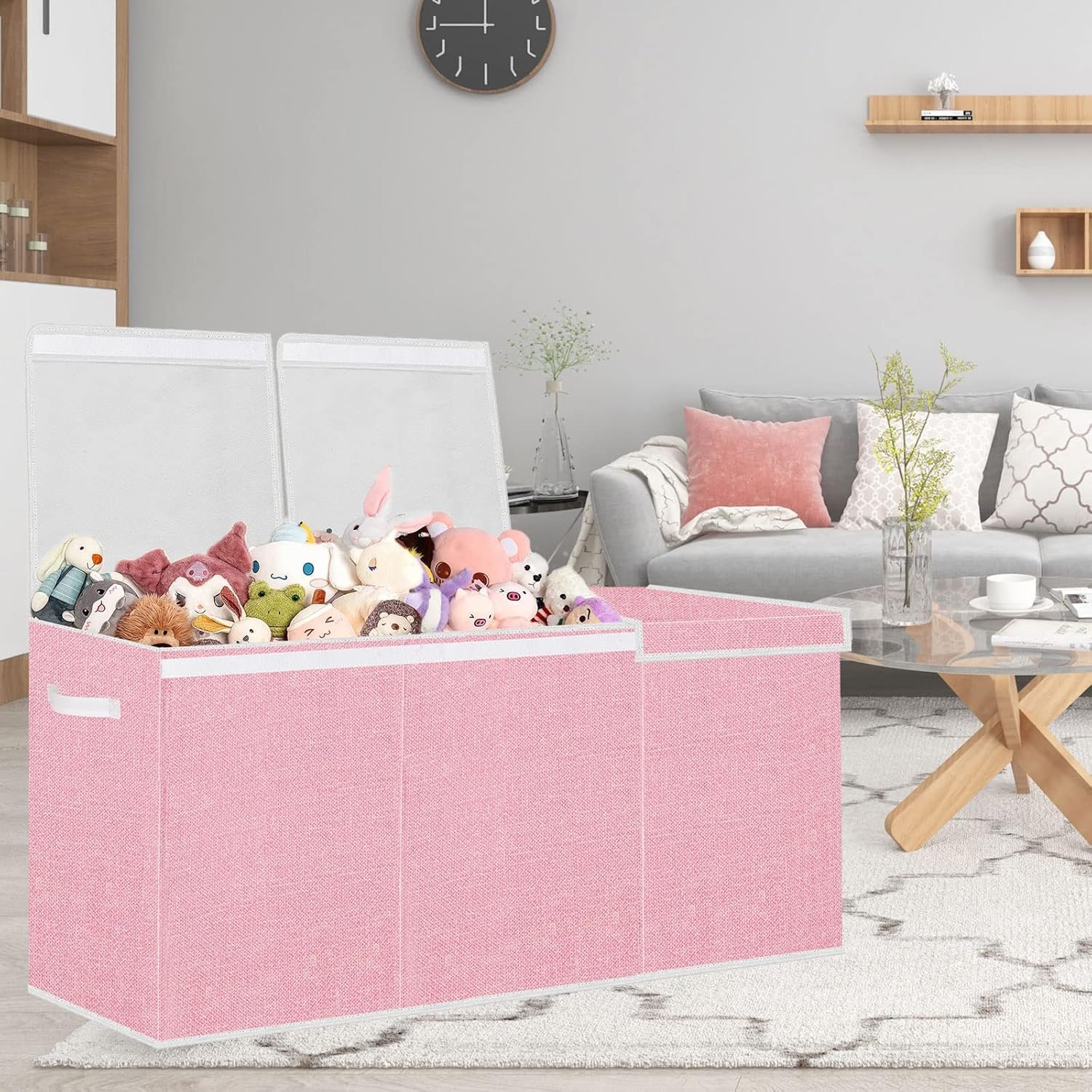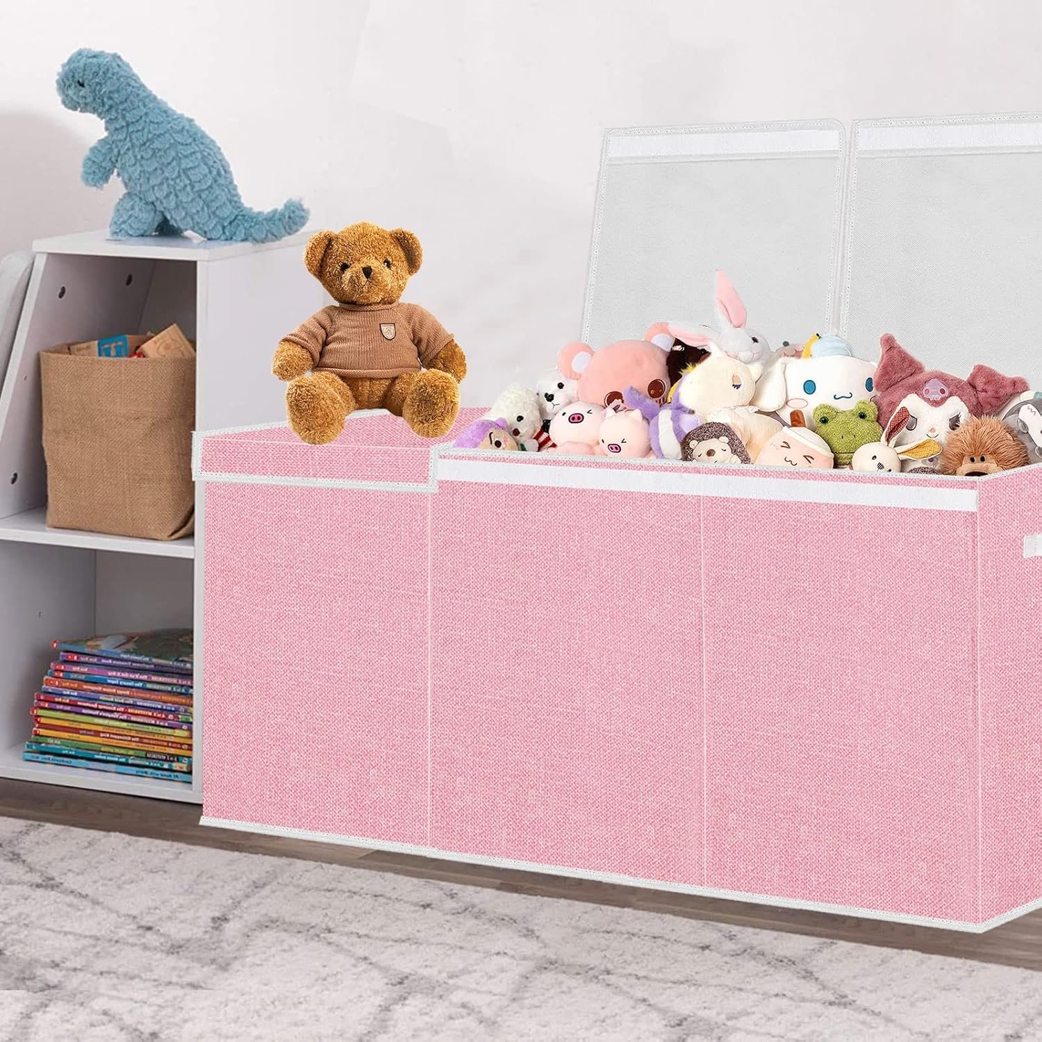[Safe and Durable Toy Chest]Made from fabric and thickened cardboard(Reinforced to 3mm cardboard, can make the toy box more solid not easily deformed.), odorless, children and pets friendly high quality fabrics.