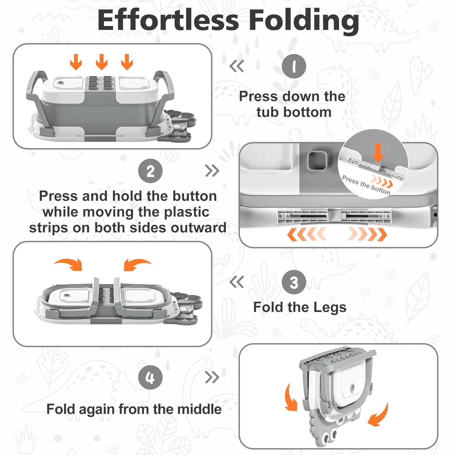 EASY TO CLEAN – Easy-pull drain plugs allow for quick draining, which prevents water accumulation. You no longer need to pick up the baby bath tub and pour water manually, so you can clean it more easily in place.