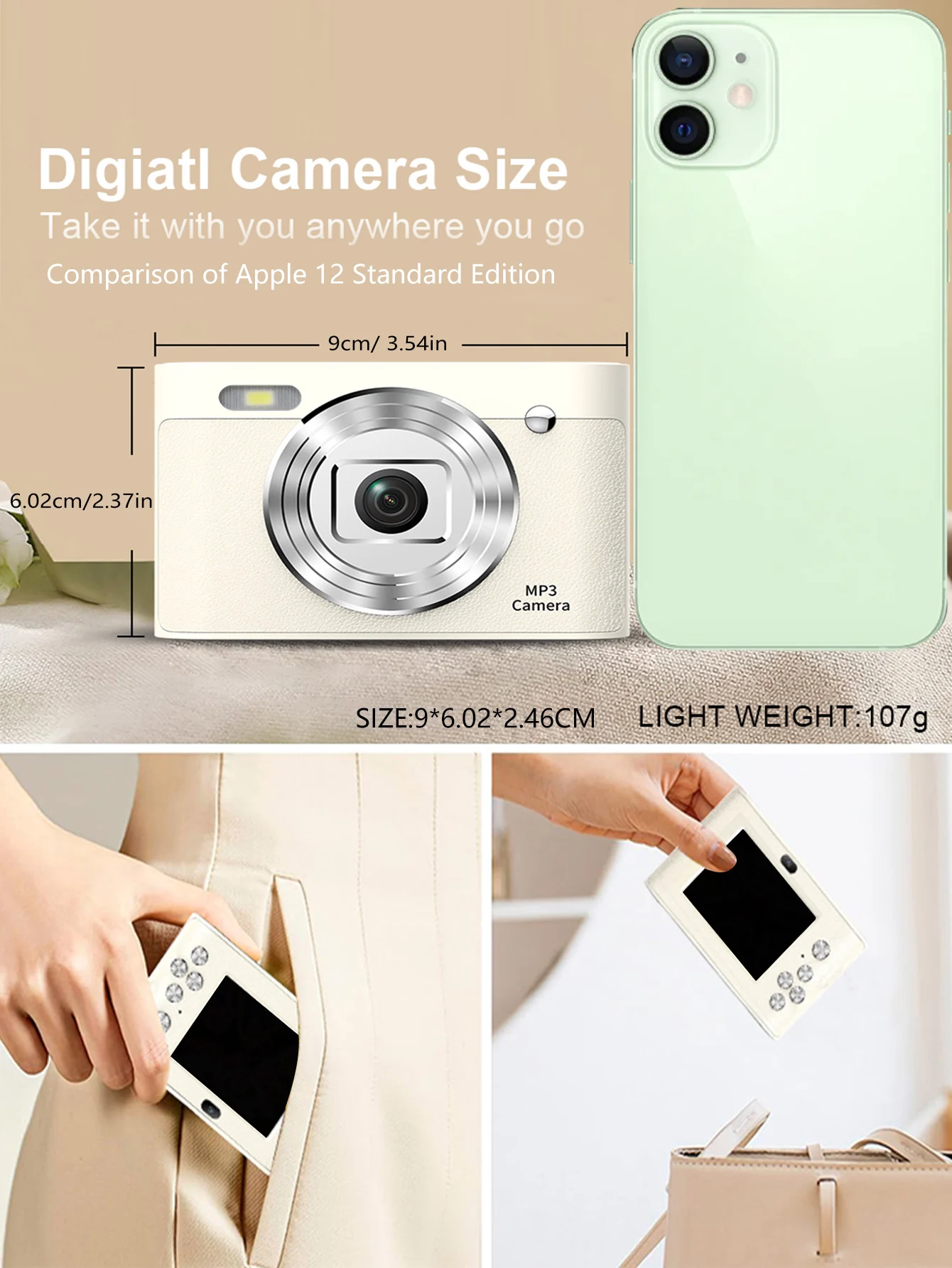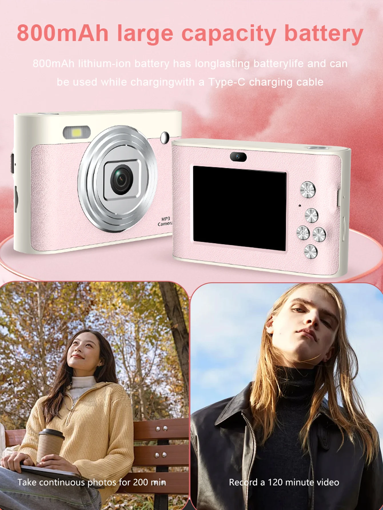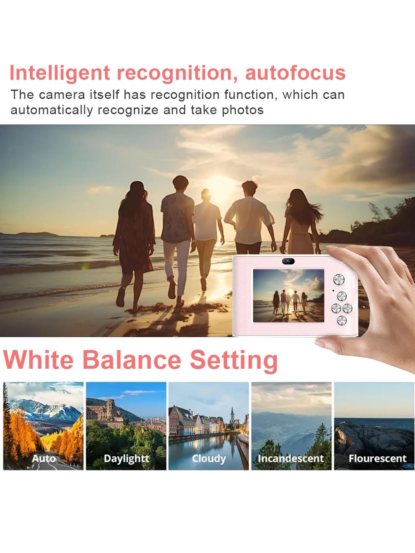 Tpye-c interface intelligent recognition digital camera, HD 4k, zoom 16x, high appearance level portable digital camera