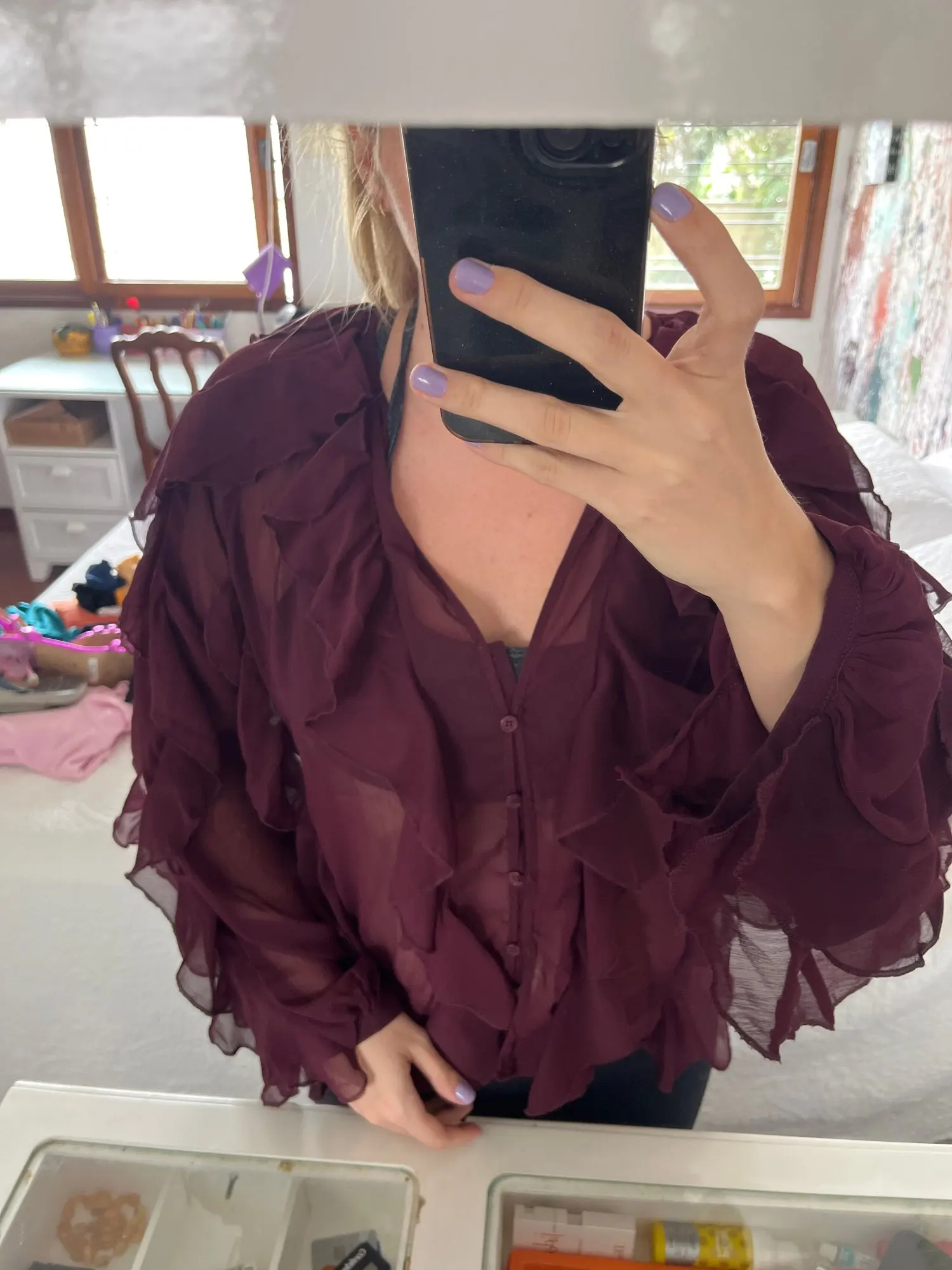 It’s a spectacular blouse! Just like Zara’s, the same quality! The color is darker than it appears in my photo, it is just like the seller’s image! Highly recommended