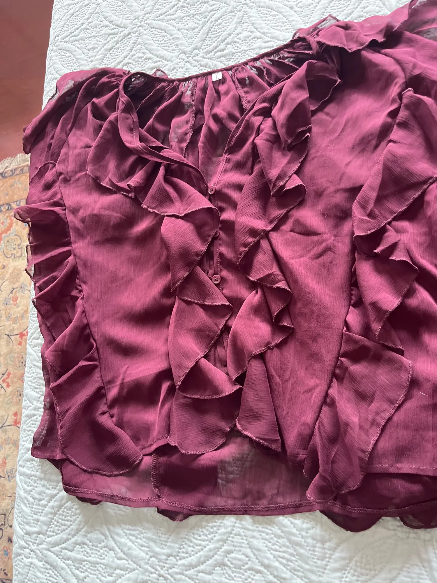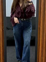16 reviews for TRAF Ruffle Womens Blouses Semi Sheer Casual Blouses Woman Spring Fairy Shirts and Blouses for Lady Long Sleeve Tops Woman 2025