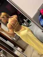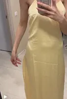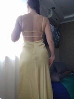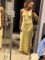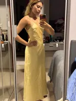 16 reviews for TRAF Womens Yellow Slip Dress Summer 2025 Woman Satin V-Neck Party Dresses Elegant Evening Sleeveless Backless Long Vestidos 066