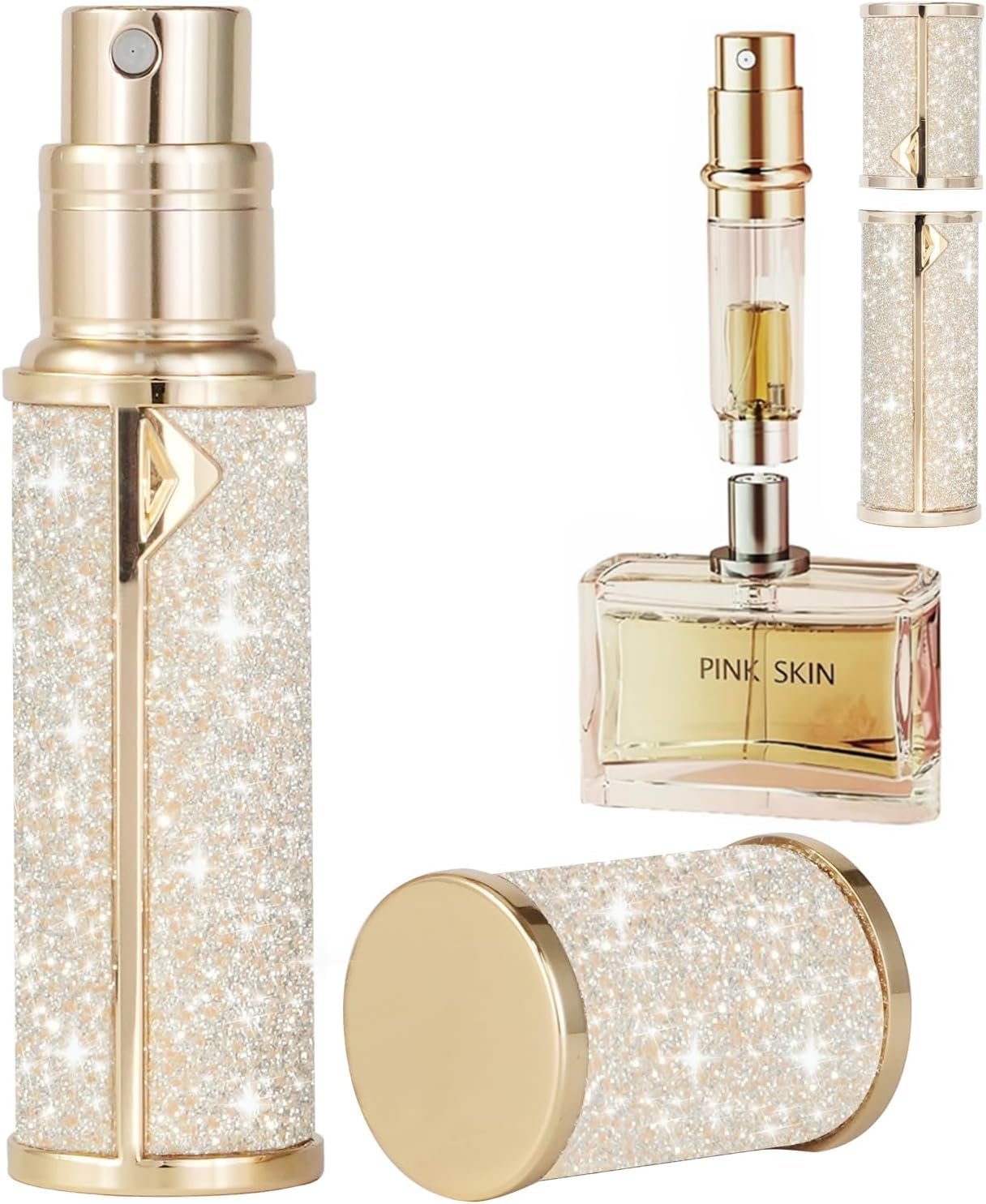 Customers find the perfume bottle sparkly and pretty. They appreciate its fillability, with one customer noting it’s easy to fill without making a mess.