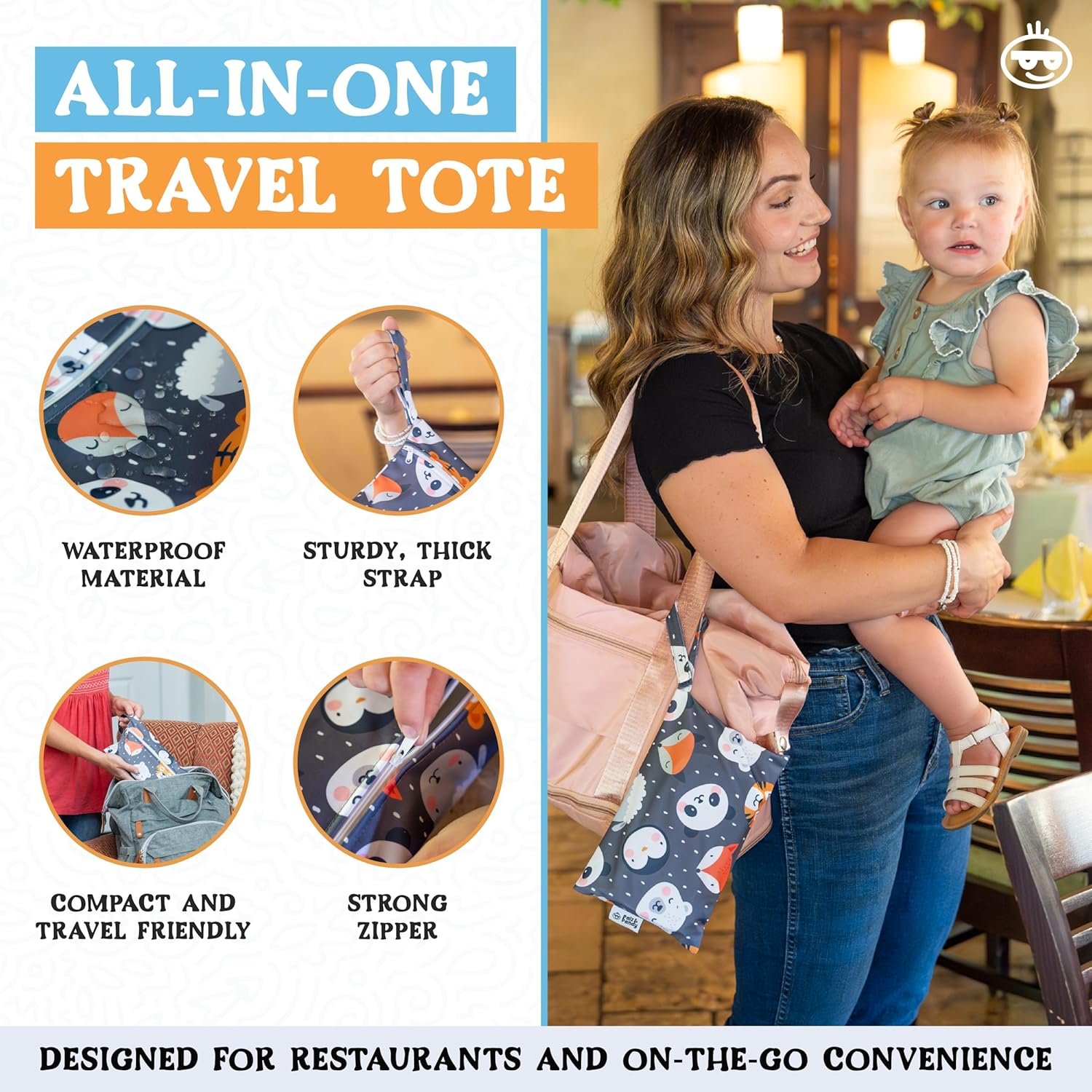 The entire set is ingeniously engineered for maximum portability. Its clever, space-saving design allows it to effortlessly slip into most diaper bags, backpacks, or carry-on luggage, so you’ll always be prepared for impromptu snacks or full-fledged feasts on the fly. To elevate its travel-readiness even further, we’ve included a Waterproof Storage Bag.