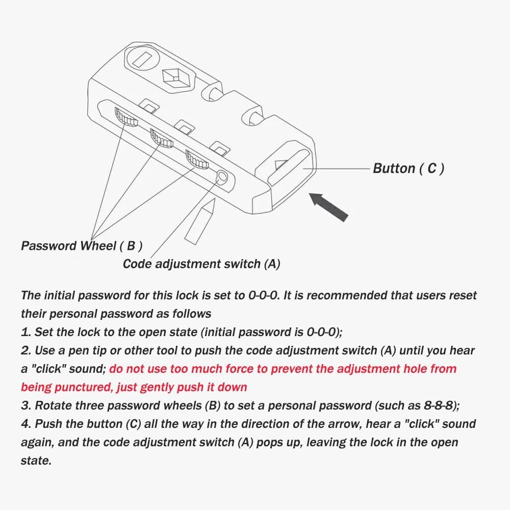 Specifications : Black mechanical password triple lock, the size is 3.1in × 0.9in (length × width), the original password is 0-0-0.