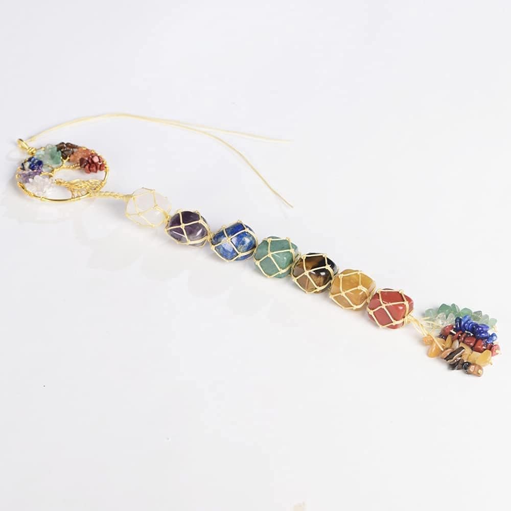 Tree of Life Handmade 7 Chakras Stones Healing Crystals Tree of Life Hanging Ornament for Home Decor