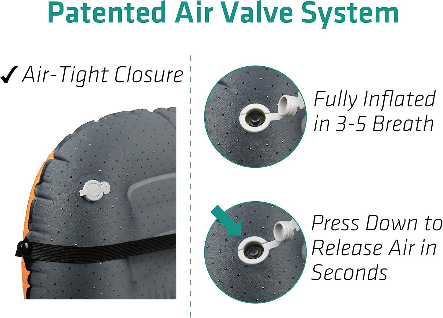 Ease Of Use! With the simple click of a button, Inflate pillow by mouth with approximately 5-8 breaths. Once you are done you can conveniently deflate the pillow with the Quick Deflate feature which rapidly releases air after use in only seconds. With the unique technology in this compact and light pillow, you are able to adjust firmness to your personal sleep preference. You can Rest easy with our 100% Satisfaction Guarantee!
