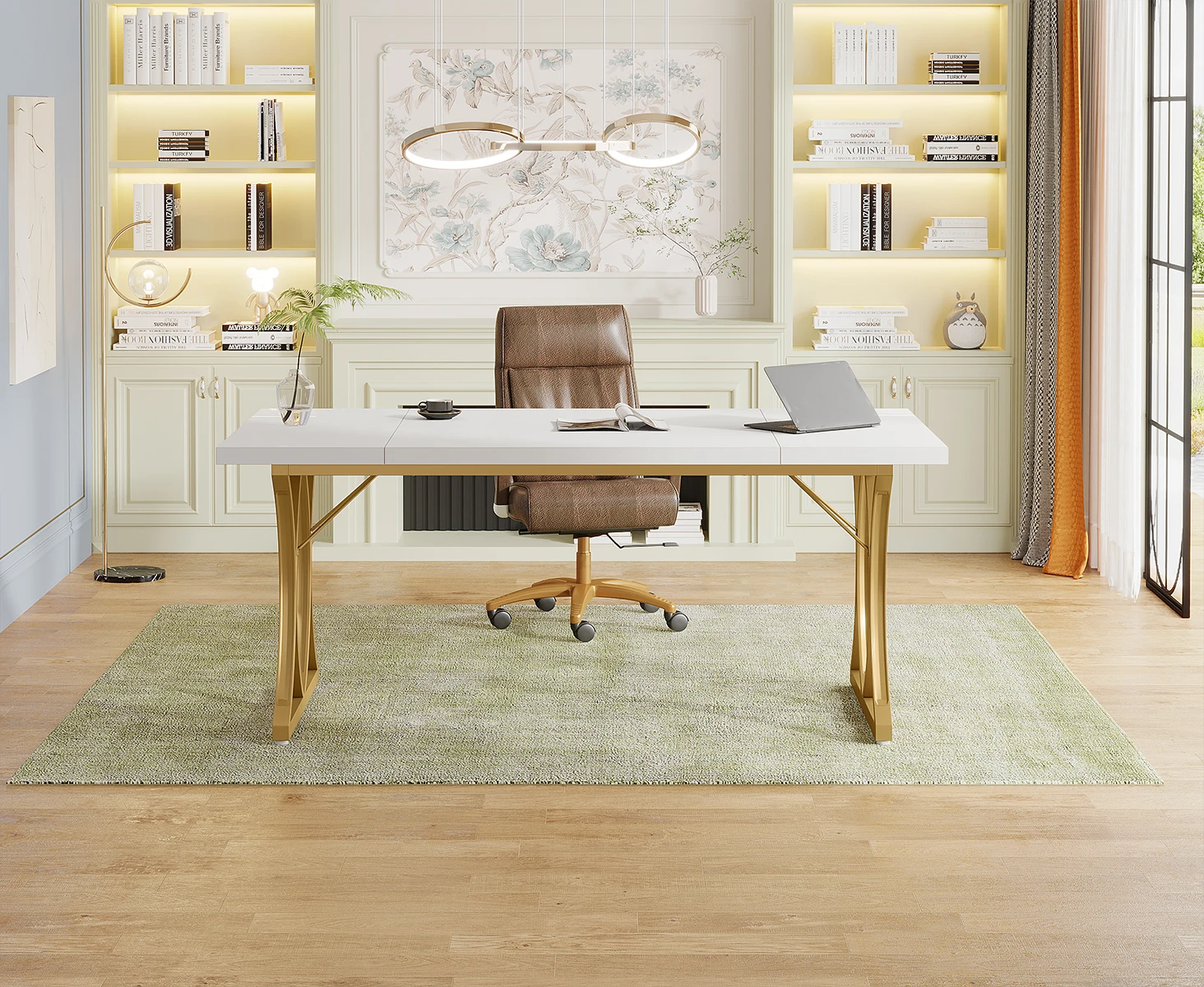 Tribesigns 63 L x31W x 30 H Executive Desk, Modern White Home Office Computer Desk, Large Computer Desk