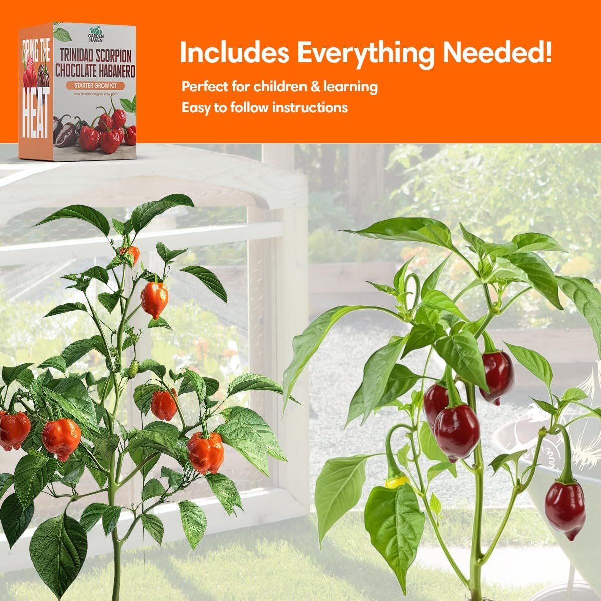Trinidad Scorpion Chocolate Habanero Grow Kit – All in One Starter Grow Kit – Grow The Hottest Peppers Garden Grow Kit Seeds Included