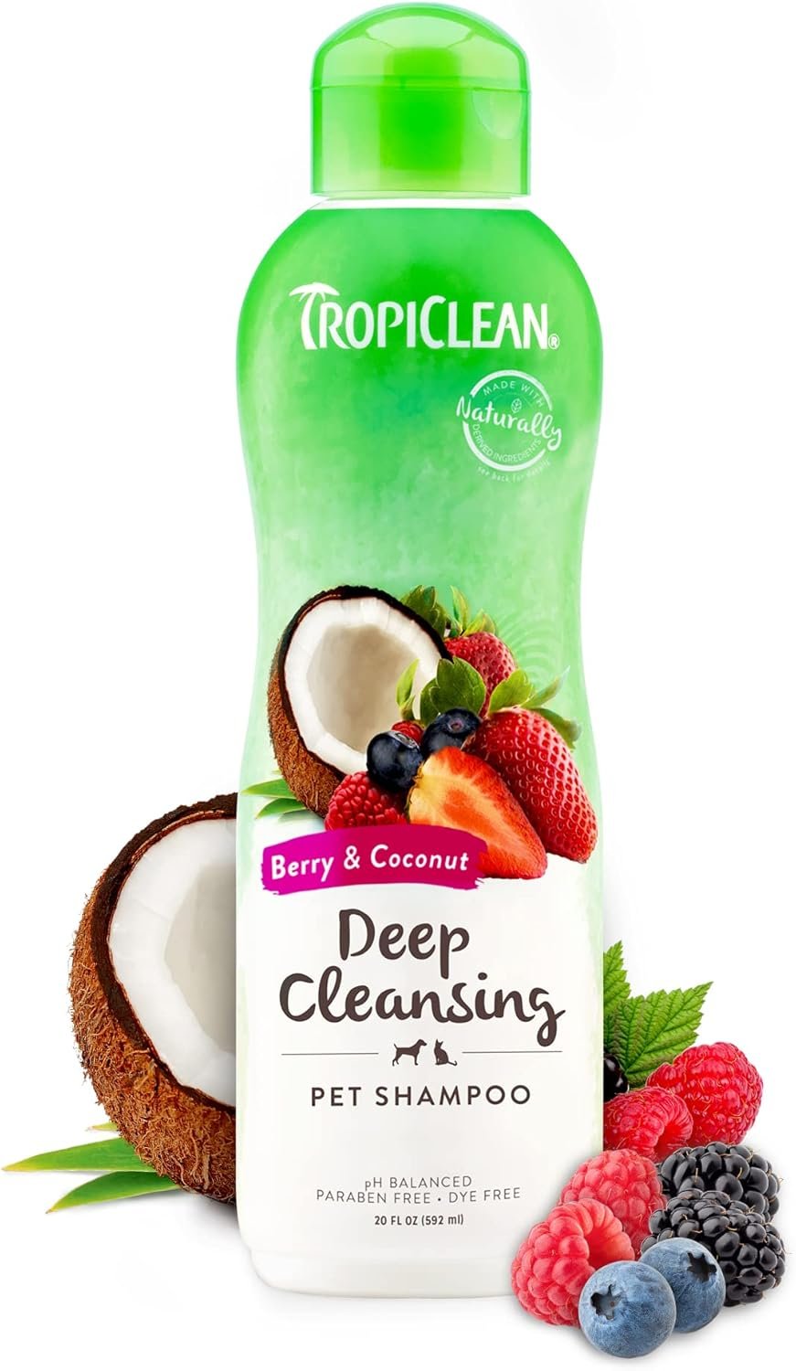 TropiClean Deodorizing Dog Shampoo for Smelly Pets, Long Lasting Odor Control, Puppy Safe, Made in the USA, Berry Scent, Cat Friendly, 20oz.
