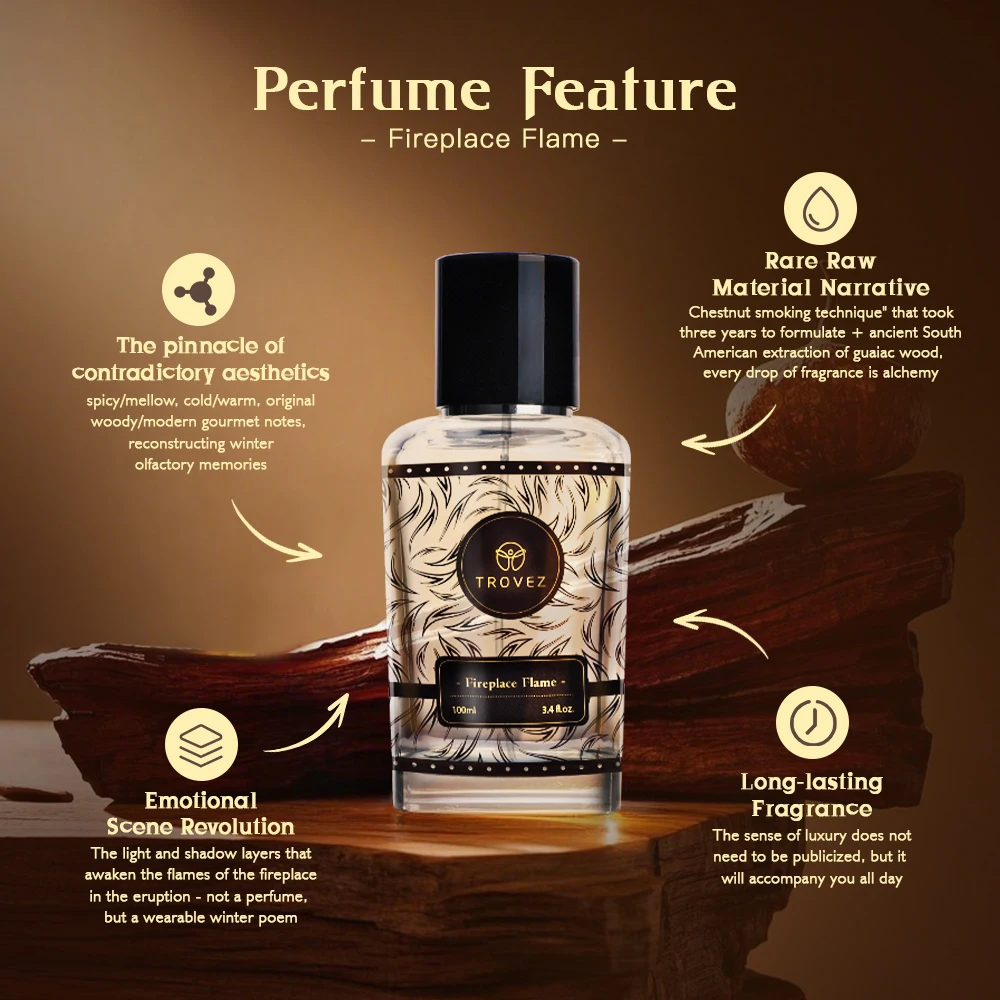 TROVEZ Fireplace Flame 100ml Perfume Arab Wood Tone Long-lasting Fragrance Unisex Perfume Body Spray Scent Gifts Aroma Men Women