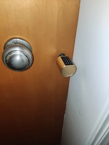 The lock is quickly and easily installed, just like a typical cylinder lock with a knob.
