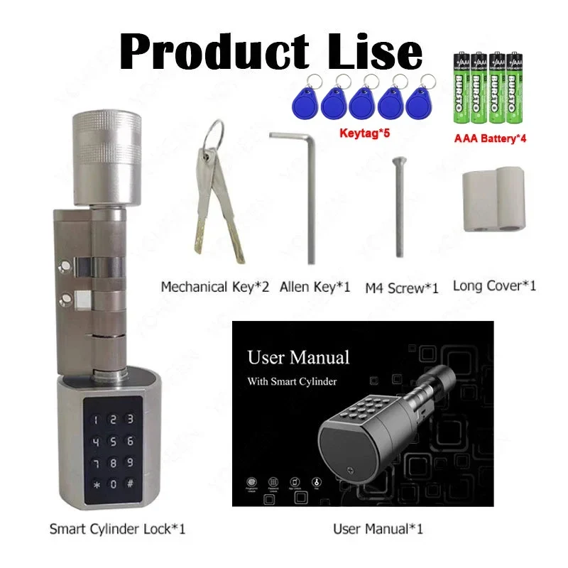 TTLock Keyless Smart Cylinder Fingerprint Lock with 4Pcs AAA Battery Adjustable Length Biometric Fingerprint Door Lock with App
