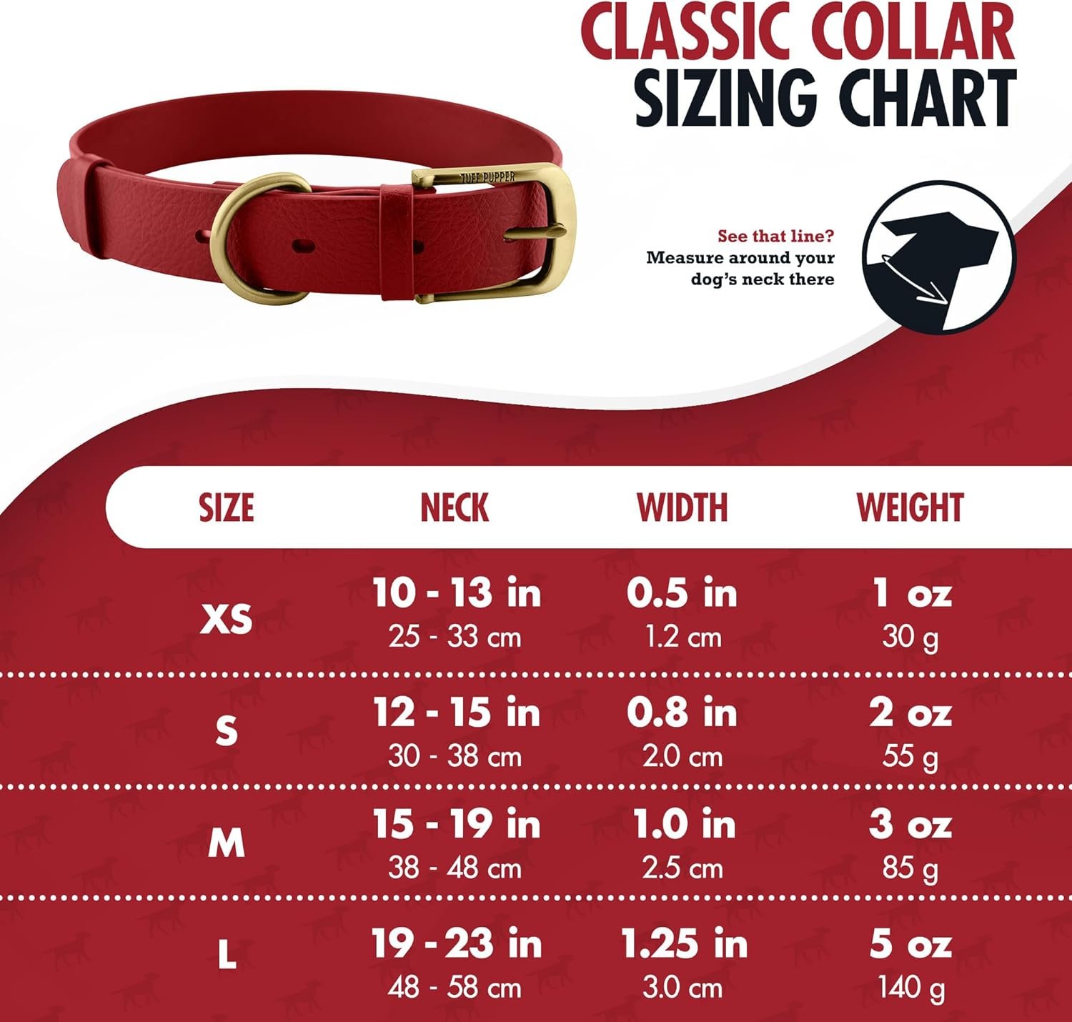 Tuff Pupper Classic Heavy Duty Dog Collar | 10x Stronger Than Leather | 100% Waterproof & Odor Proof Dog Collar | Tough Rust-Proof All Metal Hardware