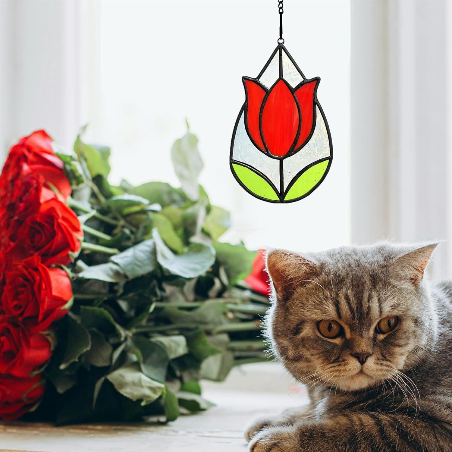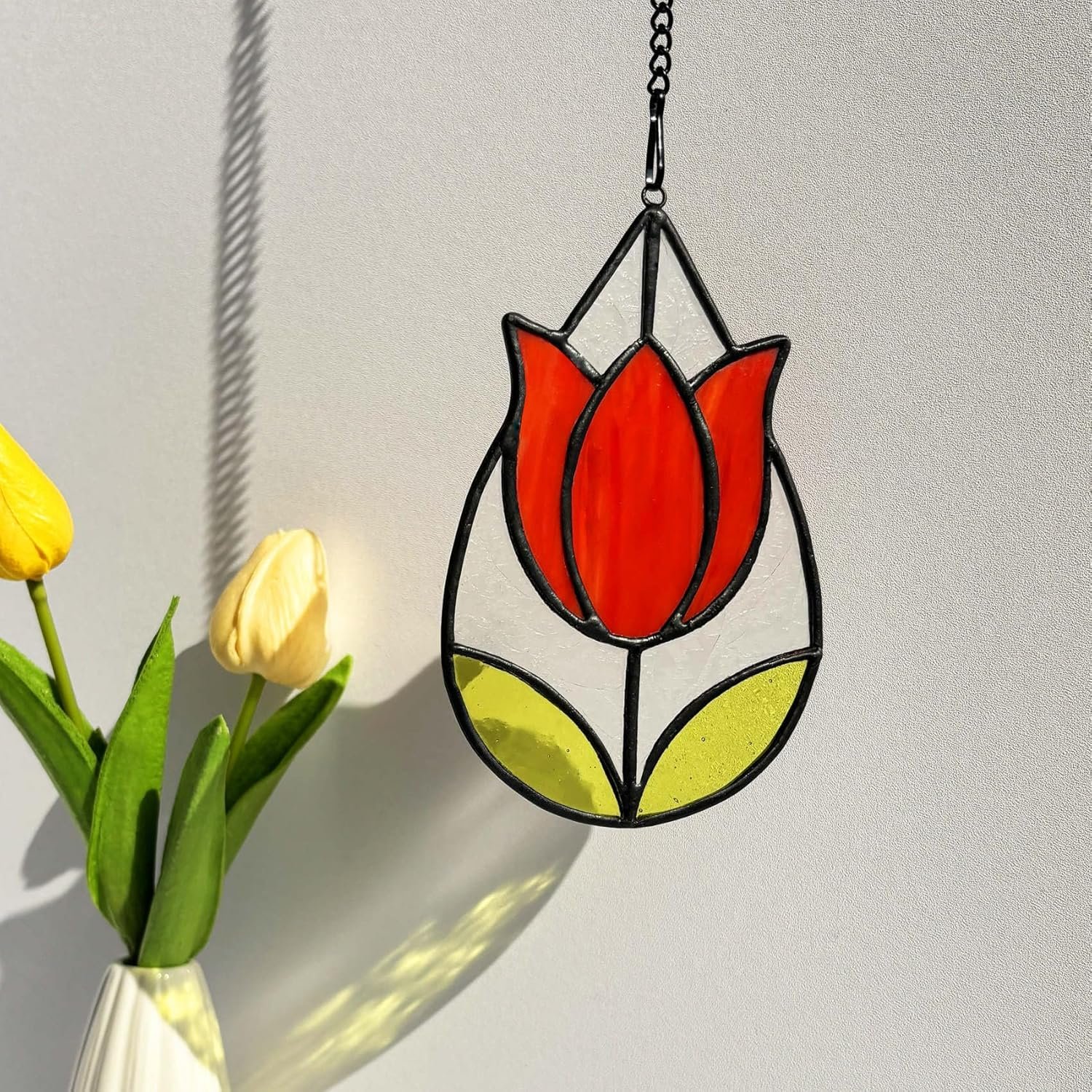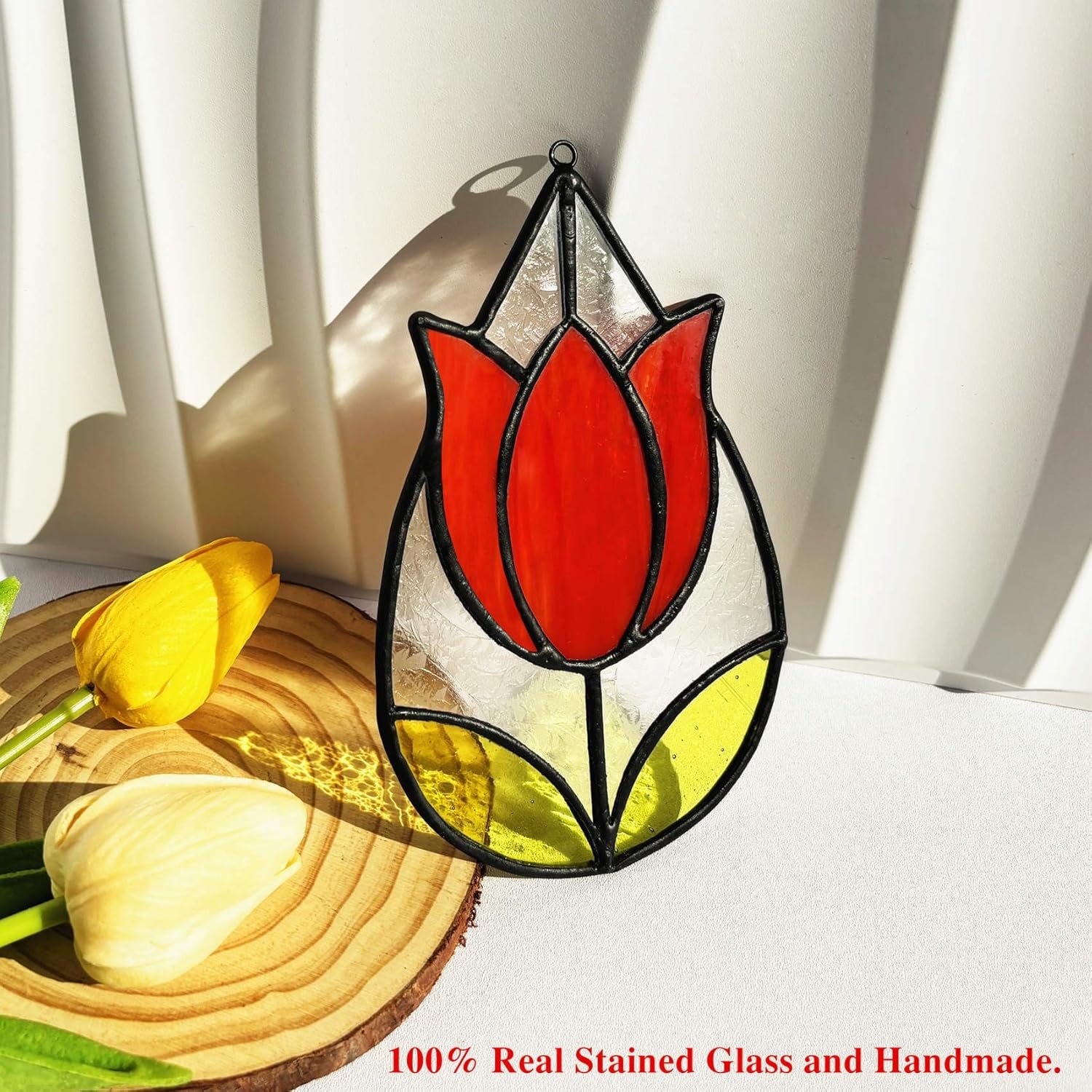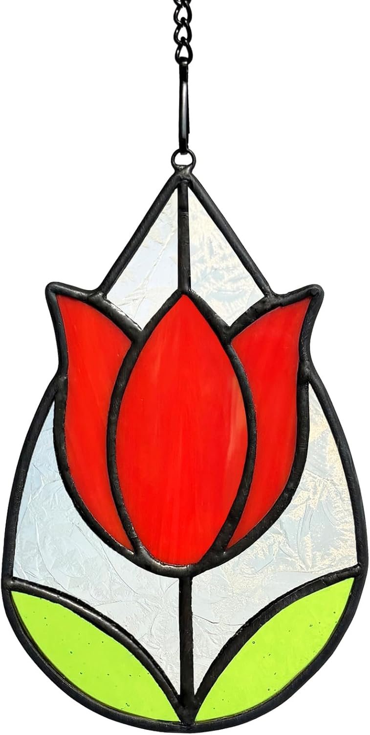 Exquisite Handmade Craftsmanship: Each suncatcher is meticulously crafted by skilled artisans using premium stained glass, ensuring a unique, vibrant tulip flower design that captures light beautifully for a dazzling display.