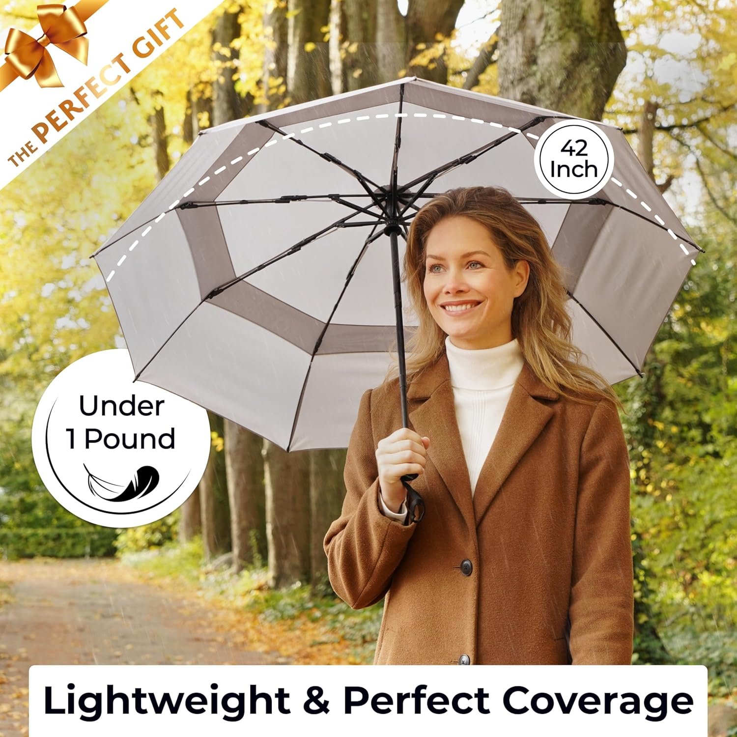 TUMELLA Strongest Windproof Travel Umbrella (Compact, Superior & Beautiful), Small Strong but Light Portable and Automatic Folding Rain Umbrella, Durable Premium Grip, Fits Car & Backpack