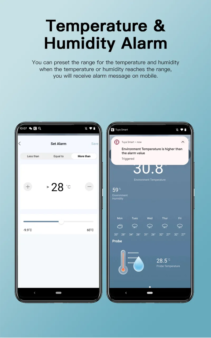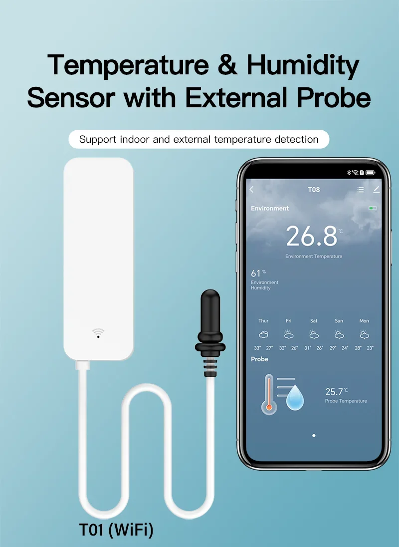 11 reviews for Tuya WiFi Temperature Humidity Sensor With External Probe for Smart Home Hygrometer APP Monitoring For Plants Aquarium Winery