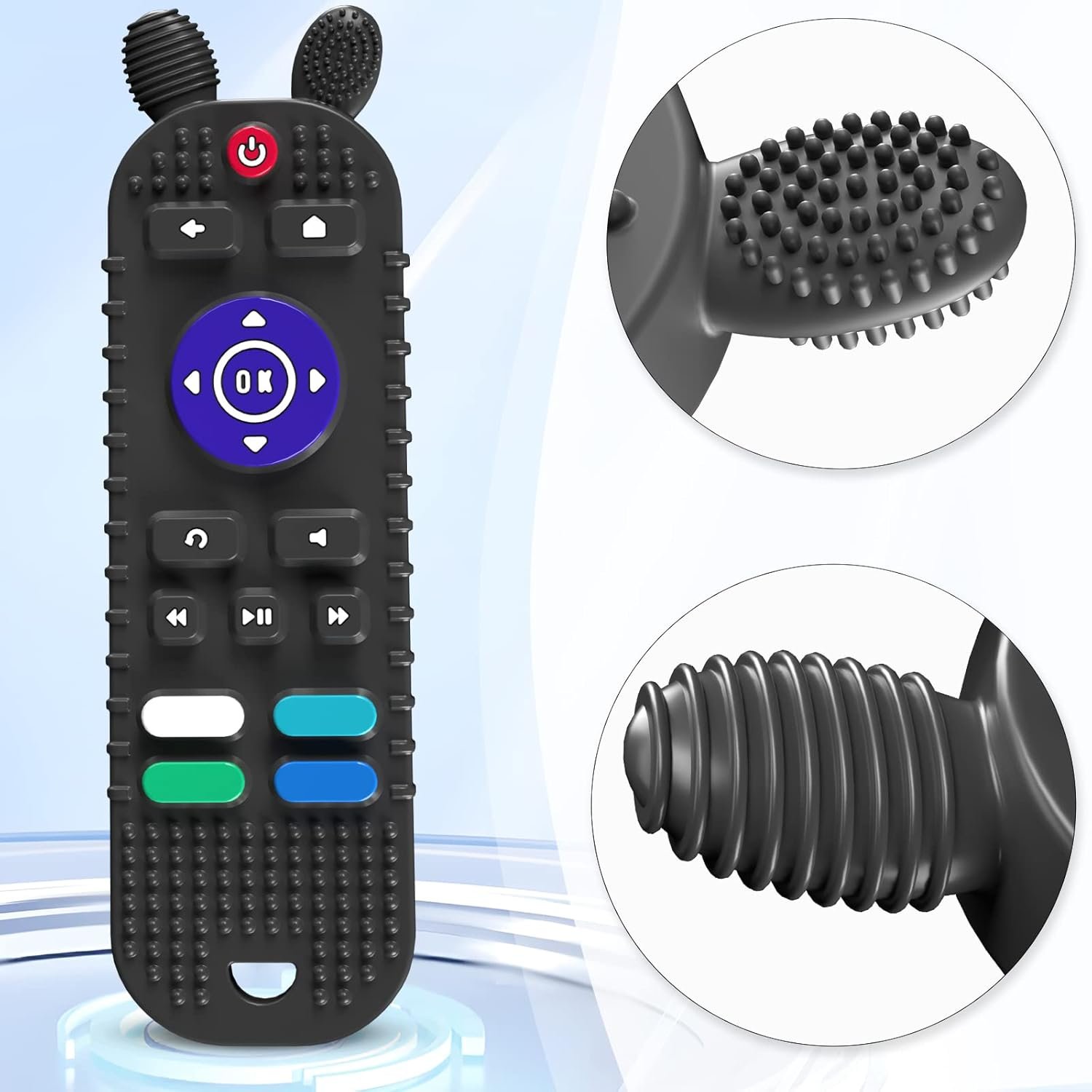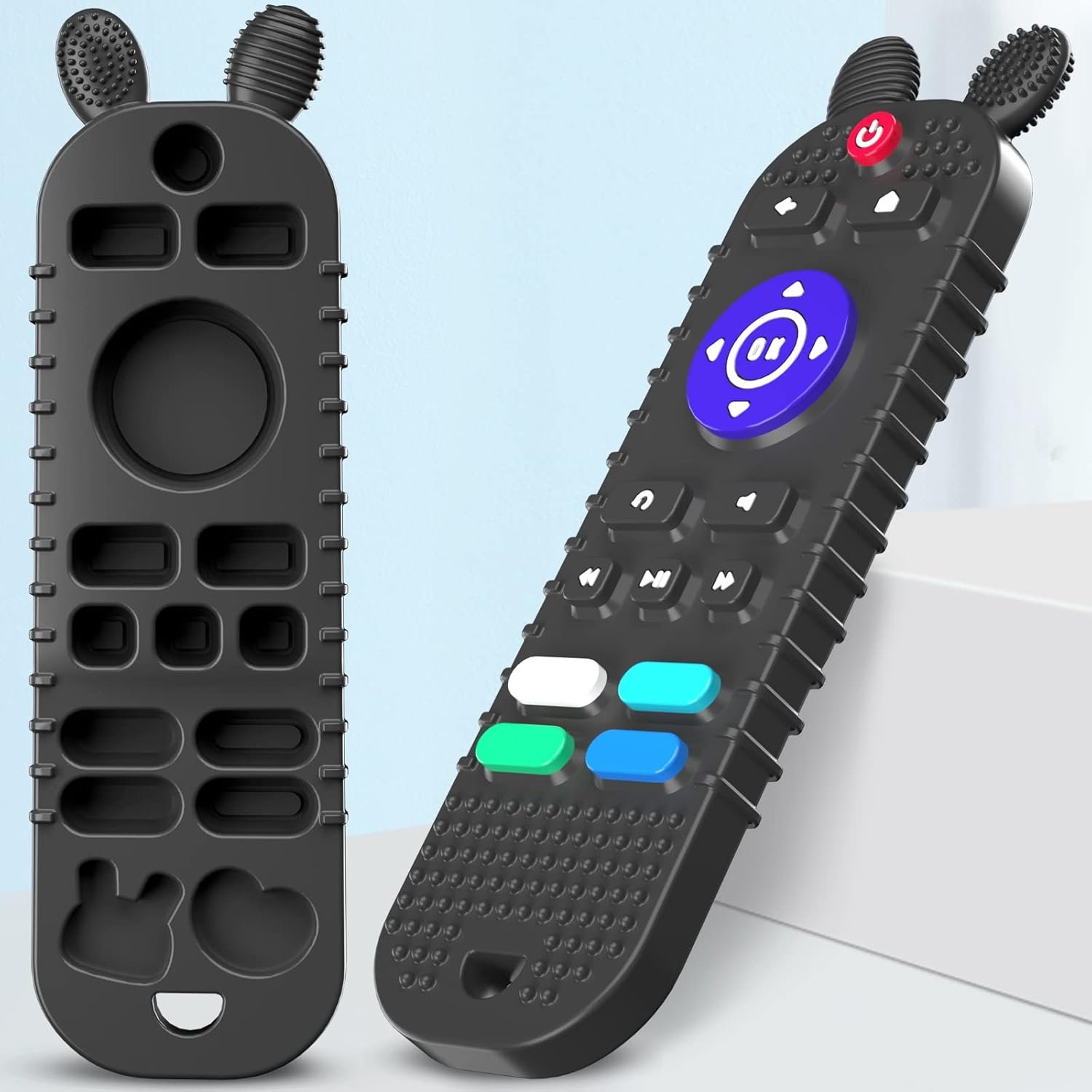 TV Remote Control Shape Baby Teething Toys and Phone Shape Teether Toys for Babies 6-12 Months, Soft Flexible Silicone Chew Toys for Baby – Black