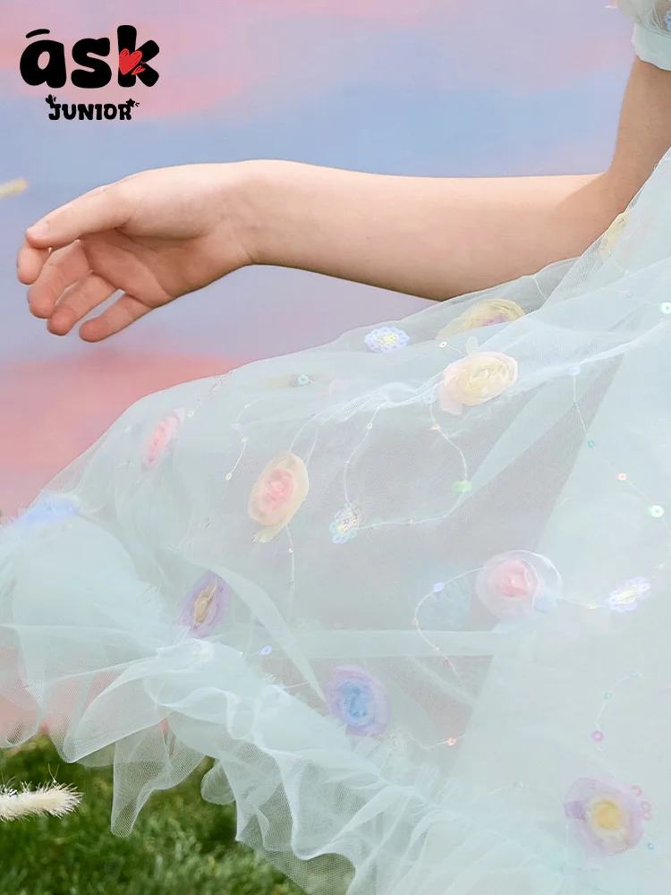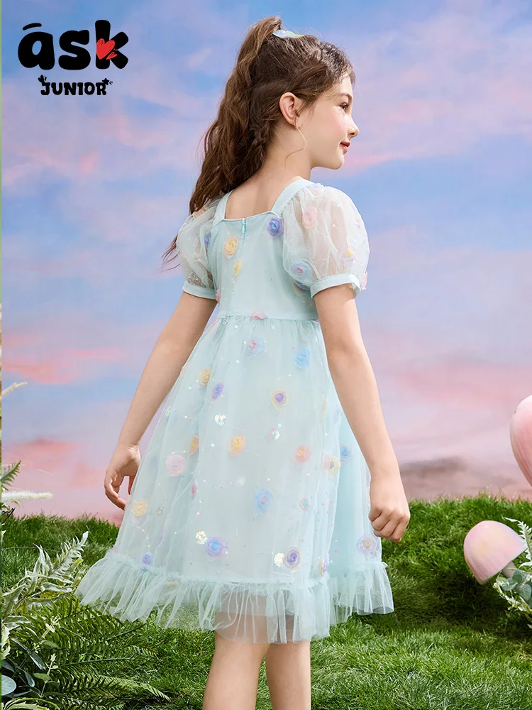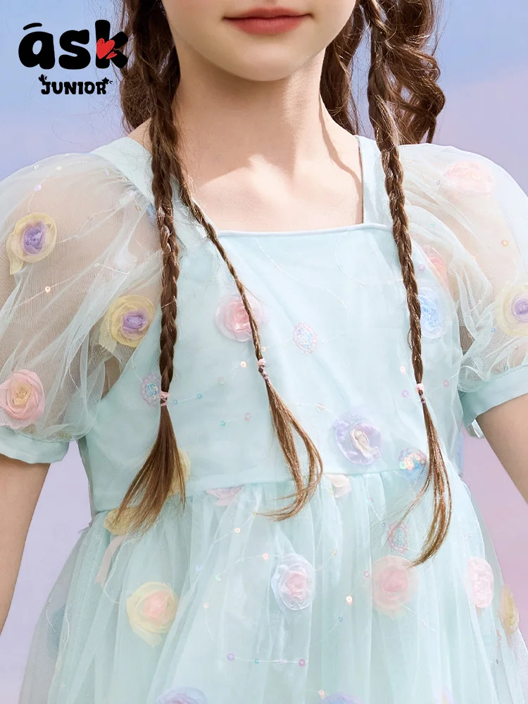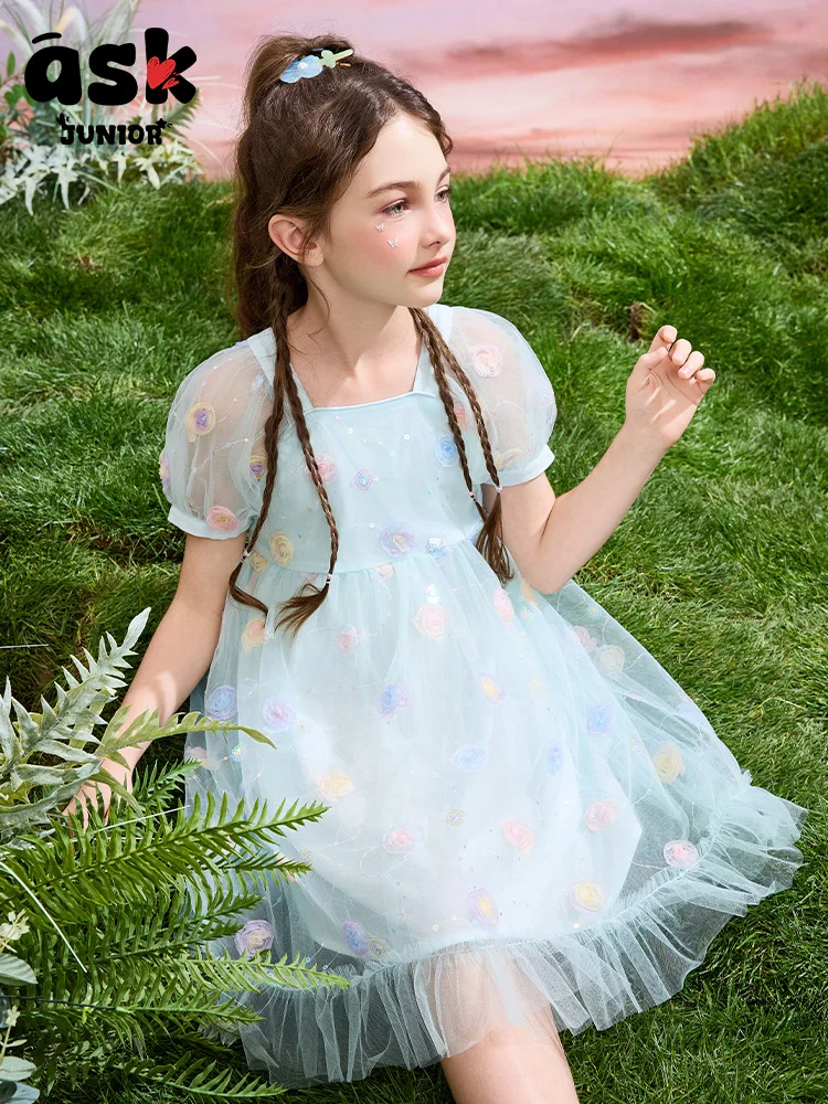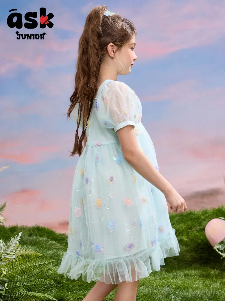 Tween Girls Summer Performance Dress Style Thin Mesh Dress