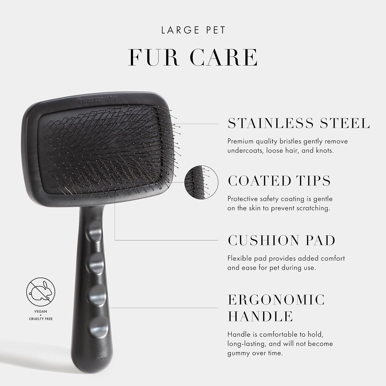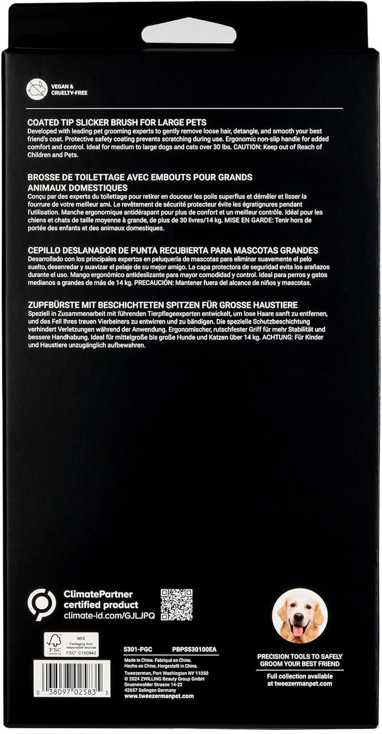 Tweezerman Dog and Cat Slicker Brush for Large Pets, Grooming Brush with Coated Bristles to Prevent Scratching and Ergonomic Handle