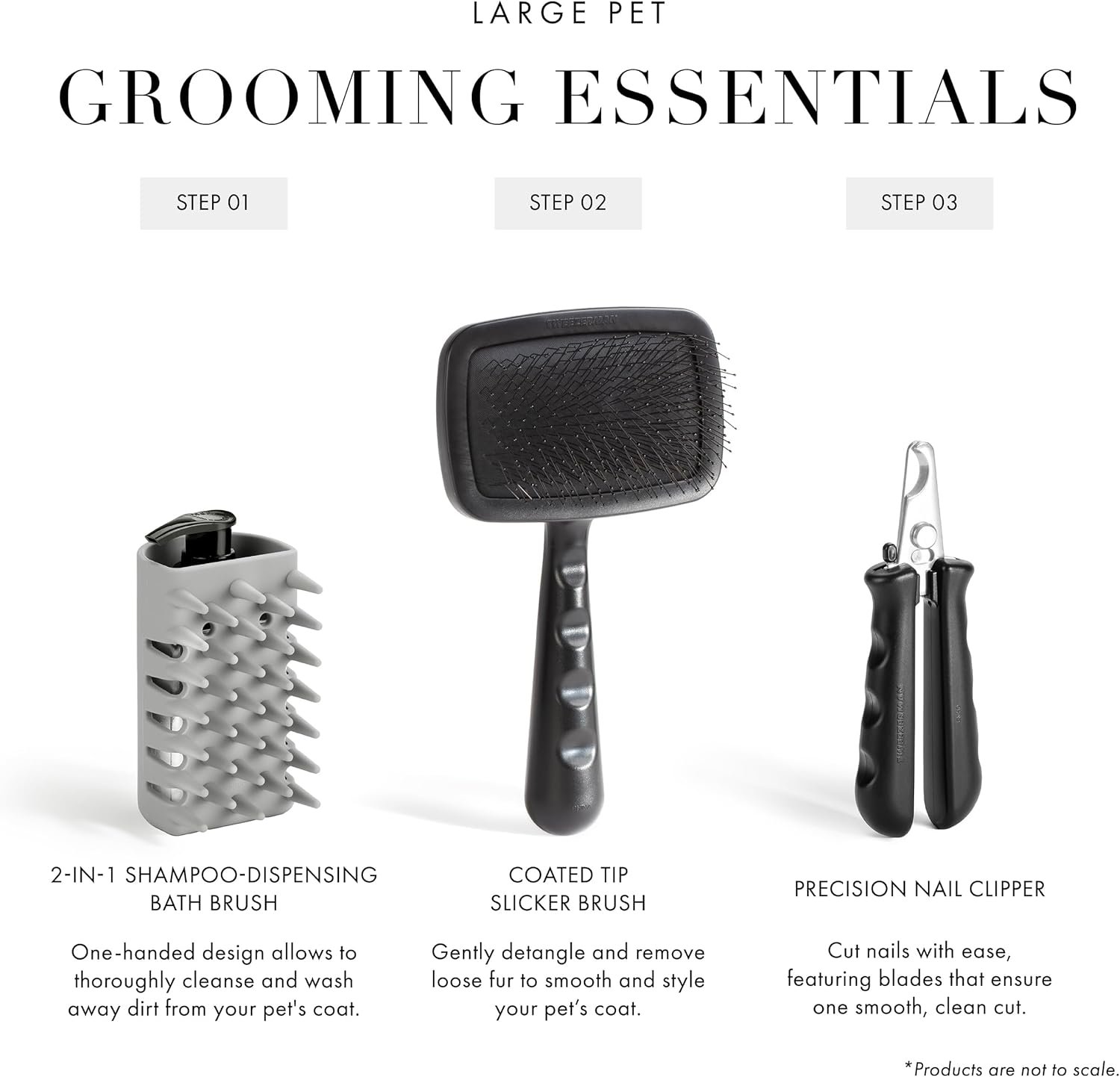 HOW TO USE: Ensure coat is free of loose debris. Section your pet’s fur and starting at the roots, gently brush through to detangle, remove undercoat and style, brushing in the direction of the fur.