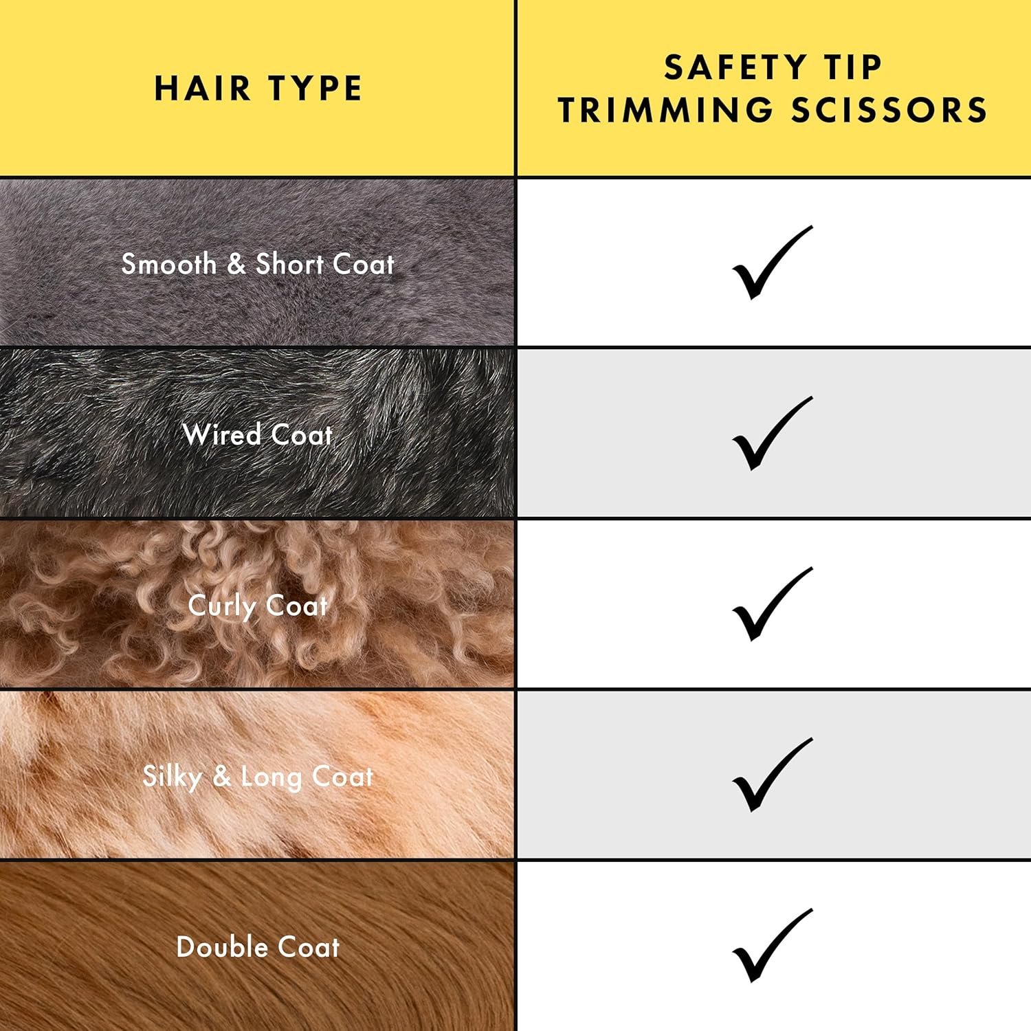 These curved scissors for cat and dog grooming feature rounded safety tips to prevent nicking the skin, eyes, nose and ears. Lightweight design provides comfort and prevents hand fatigue while trimming. Curved blade guides shape for cutting. Ideal for at-home grooming or beginner professional groomers.