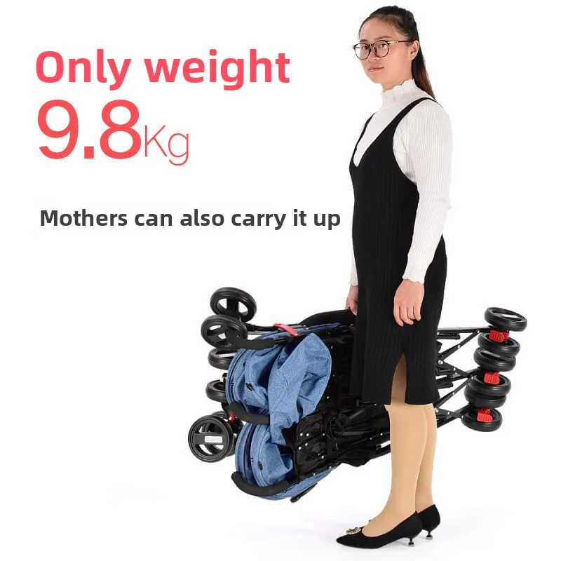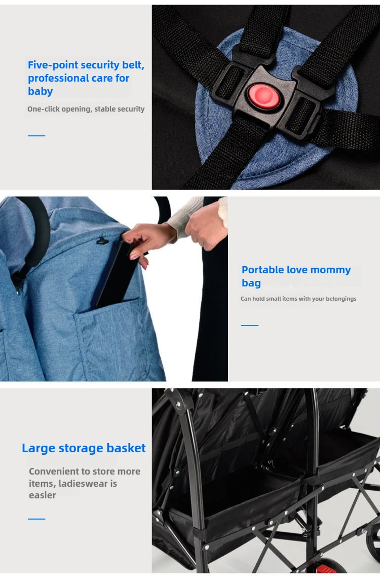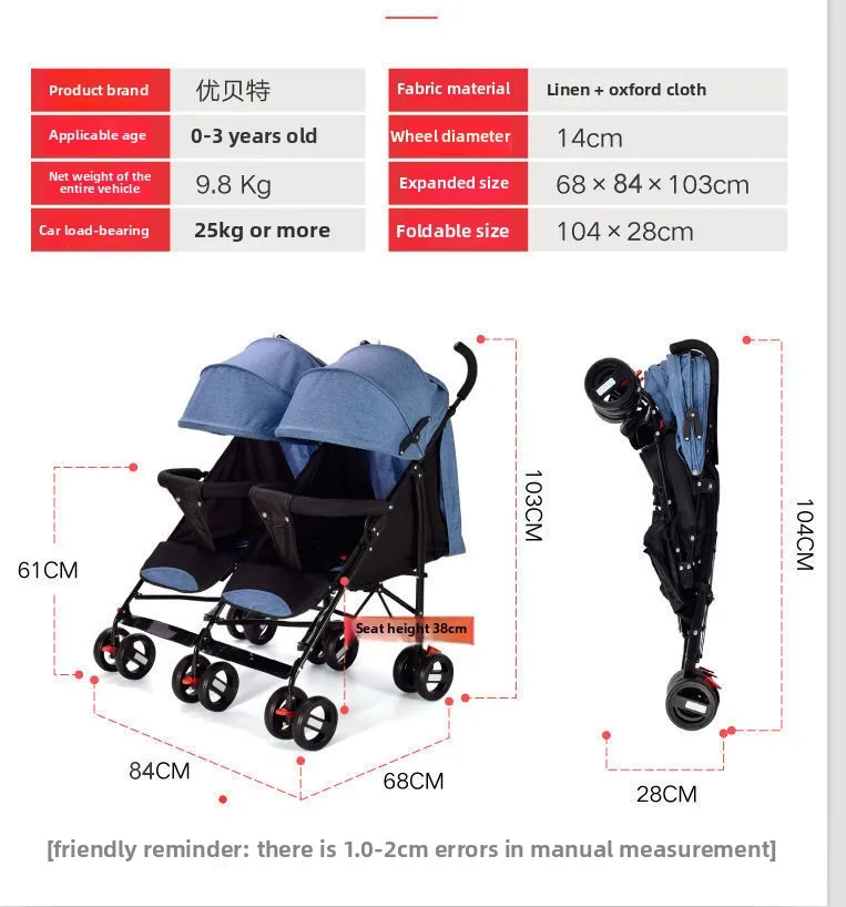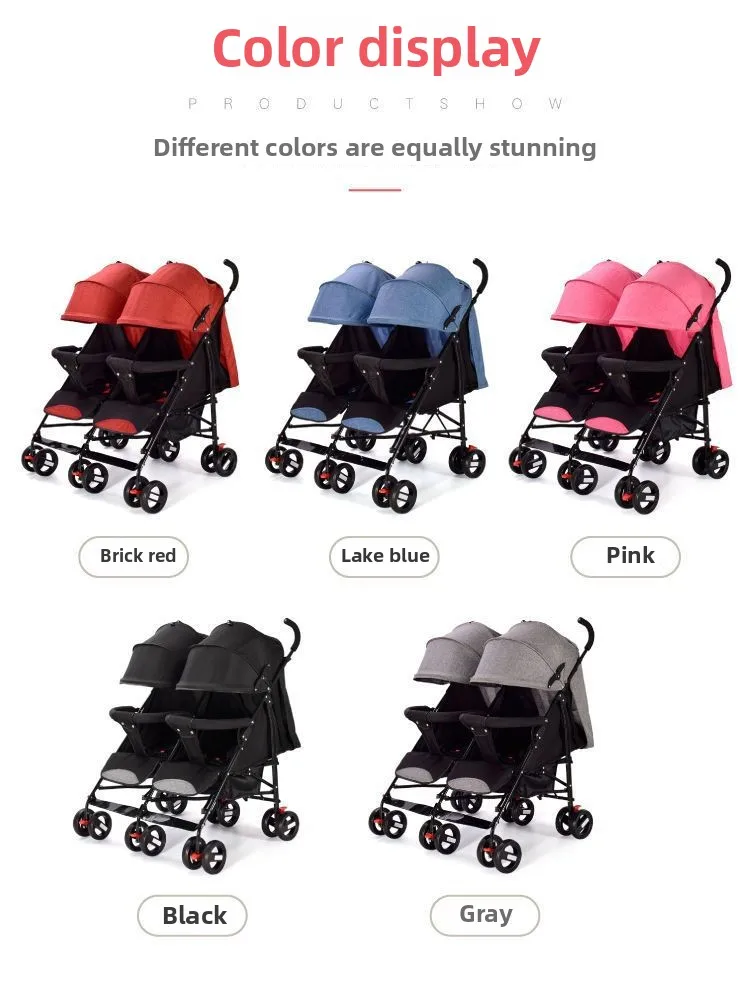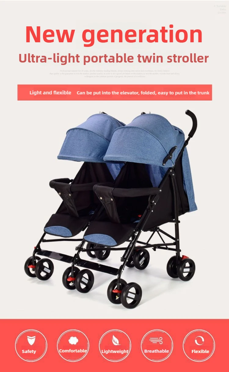 Twin Baby Stroller Sit and Recline Newborn Stroller Lightweight Foldable Double Stroller Comes with Bonus Items