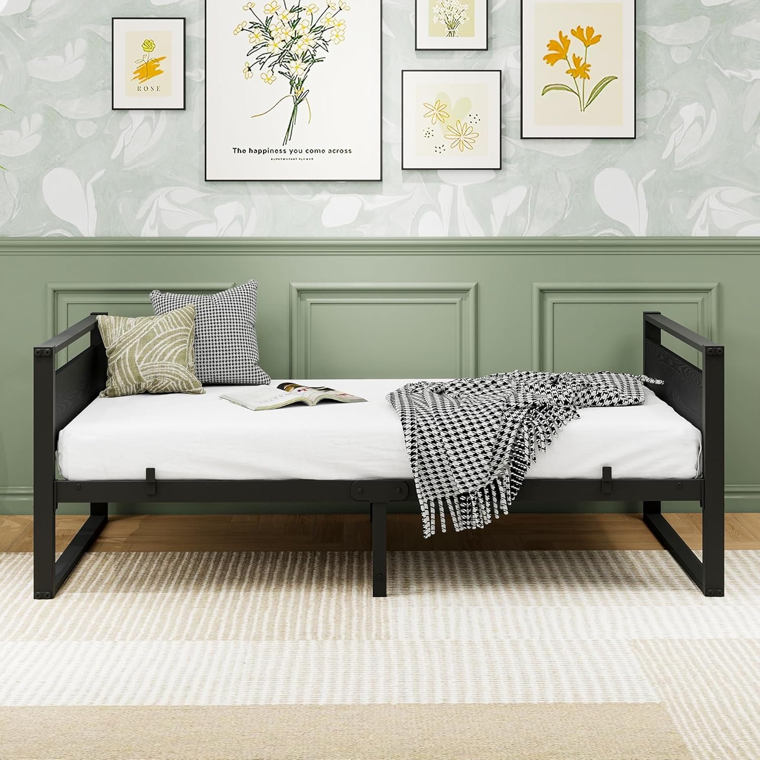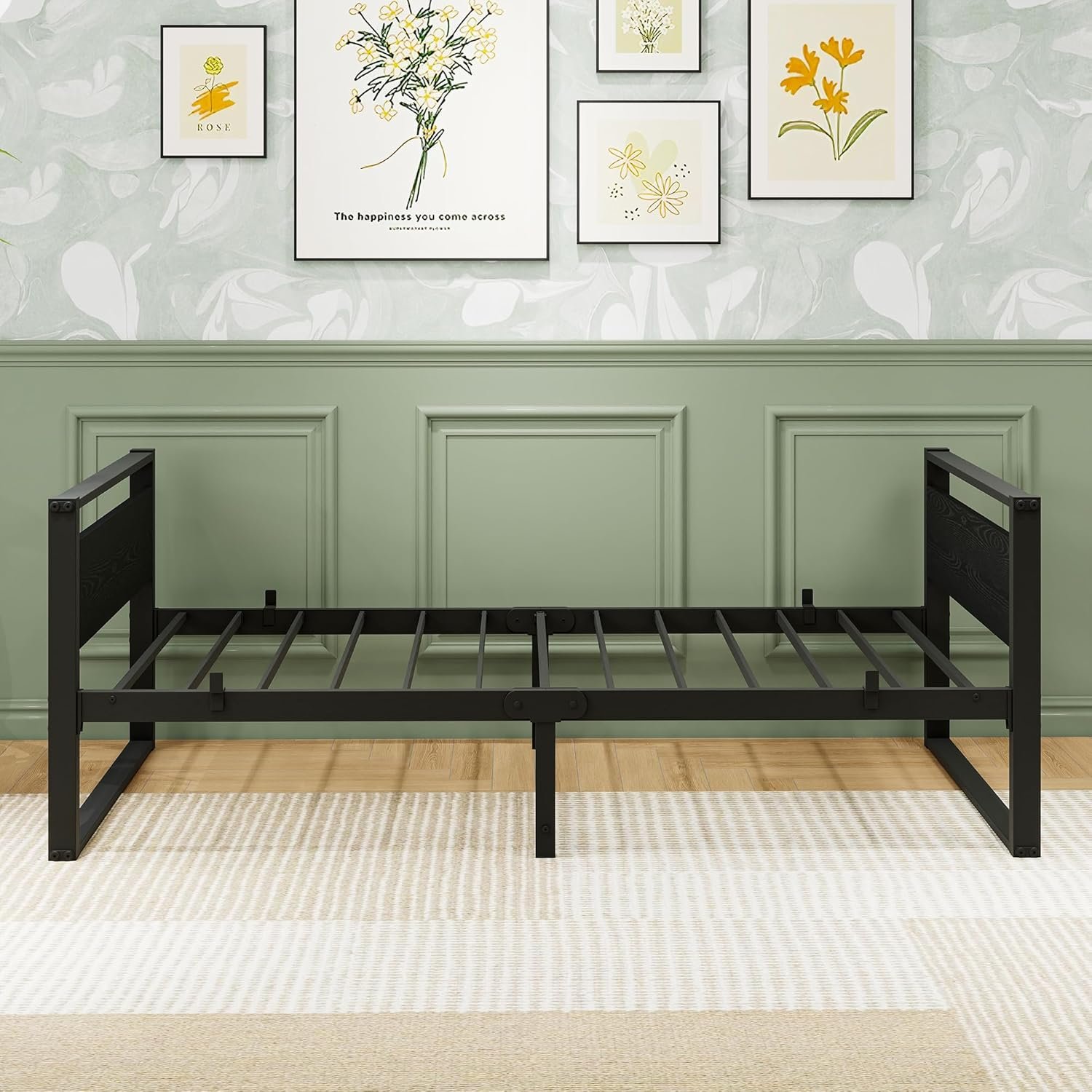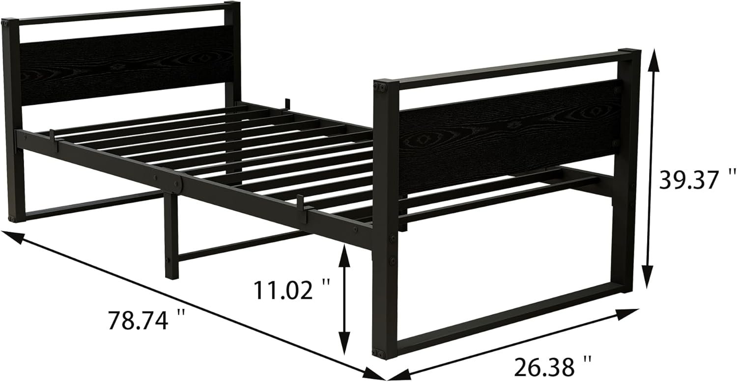 Twin Bed Frame with Wooden Headboard, Twin Size with Multifunctional Mattress Foundation,Metal Sofa Bed Frame for Living Room, Bedroom, Apartment,Black