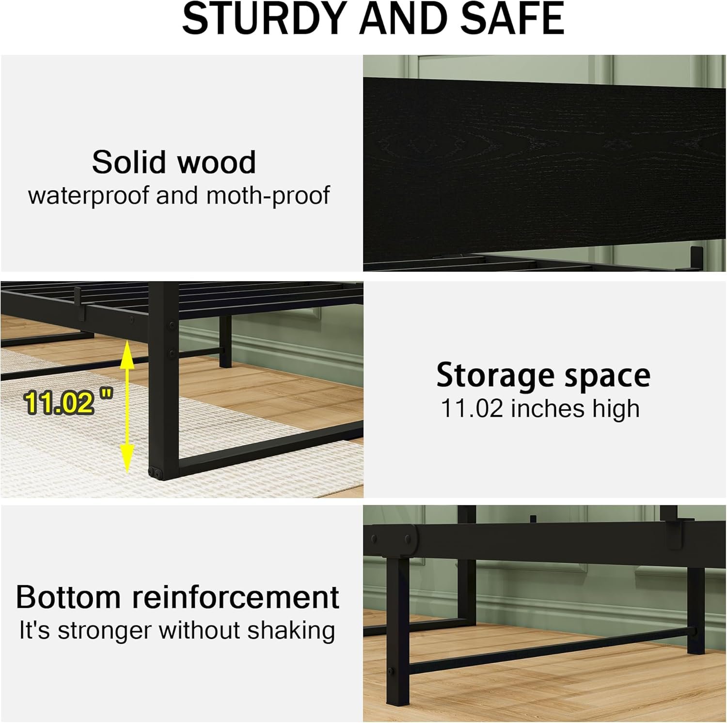 11.02 inches of underbed storage space for organizing clothes, toys or quilts.