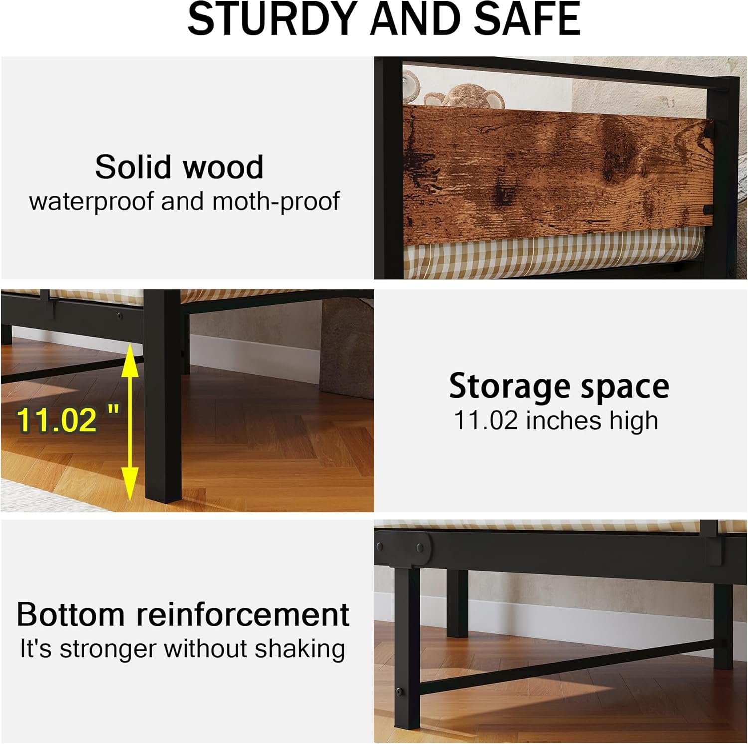 11.02 inches of underbed storage space for organizing clothes, toys or quilts.