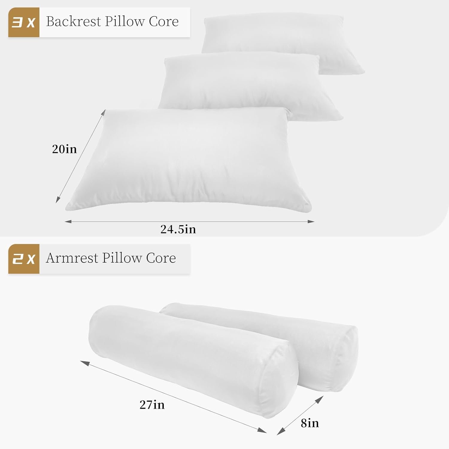 The twin size bolster & back rest pillow cushion polyester fiberfill does not include a mattress.Only 2 x Bolster Pillow Insert: 27″ x 8″; 3 x Back Pillow Insert: 24.5″ x 20″ x 5″.”INSERT ONLY”