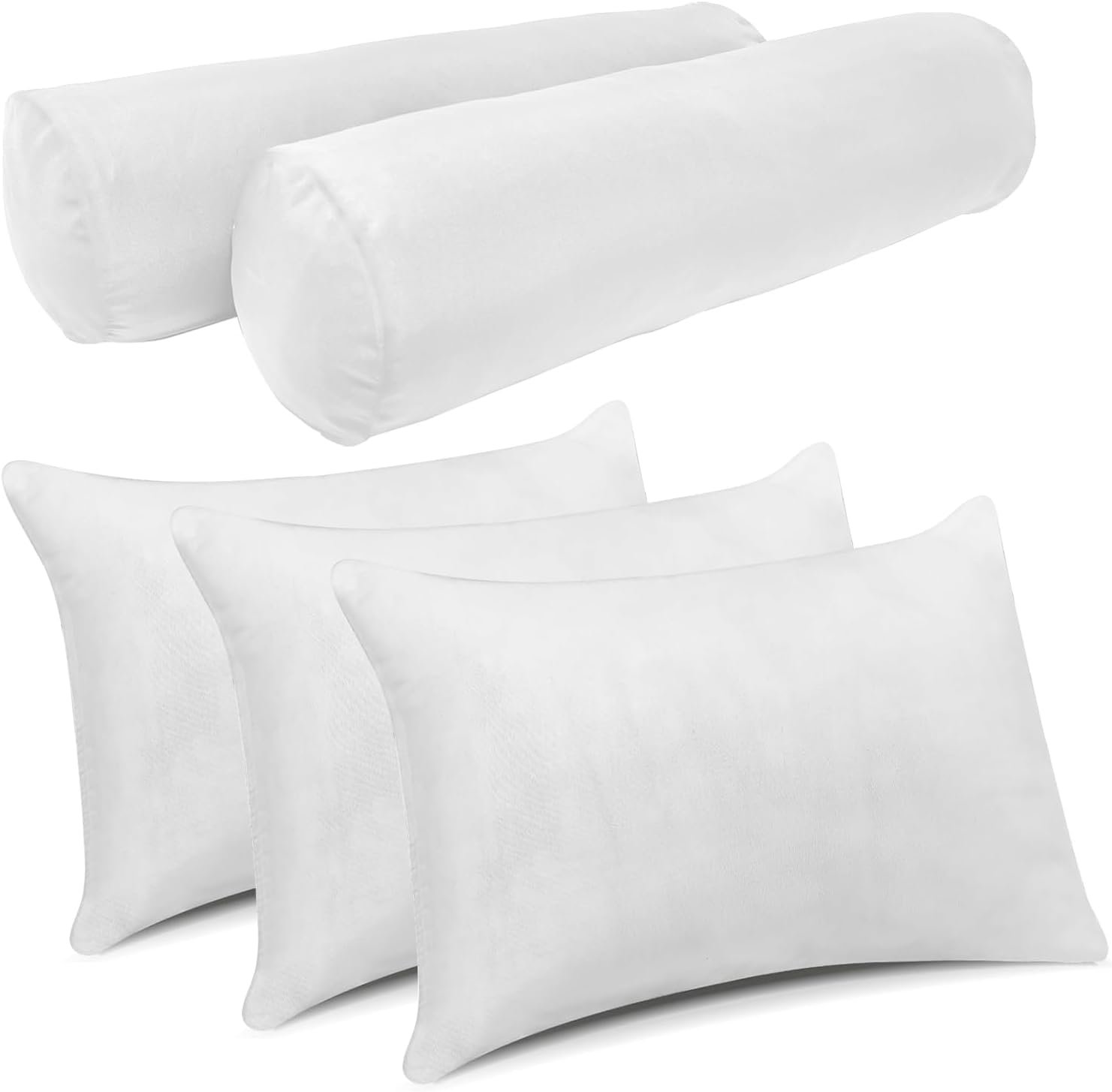 Twin Size Pillow & Bolster Cushion Polyester Fiberfill Inserts Replacement Set for Outdoor or Indoor Daybed and Porch Swing Bed, Insert ONLY (White, 24.5 * 20 * 5IN)