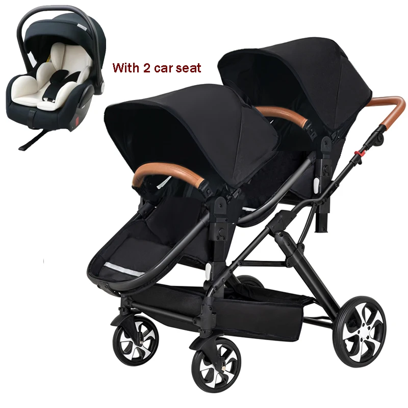 Twins Baby stroller 3in1 with car seat, double kids baby carriage, detachable sleeping basket high view baby stroller