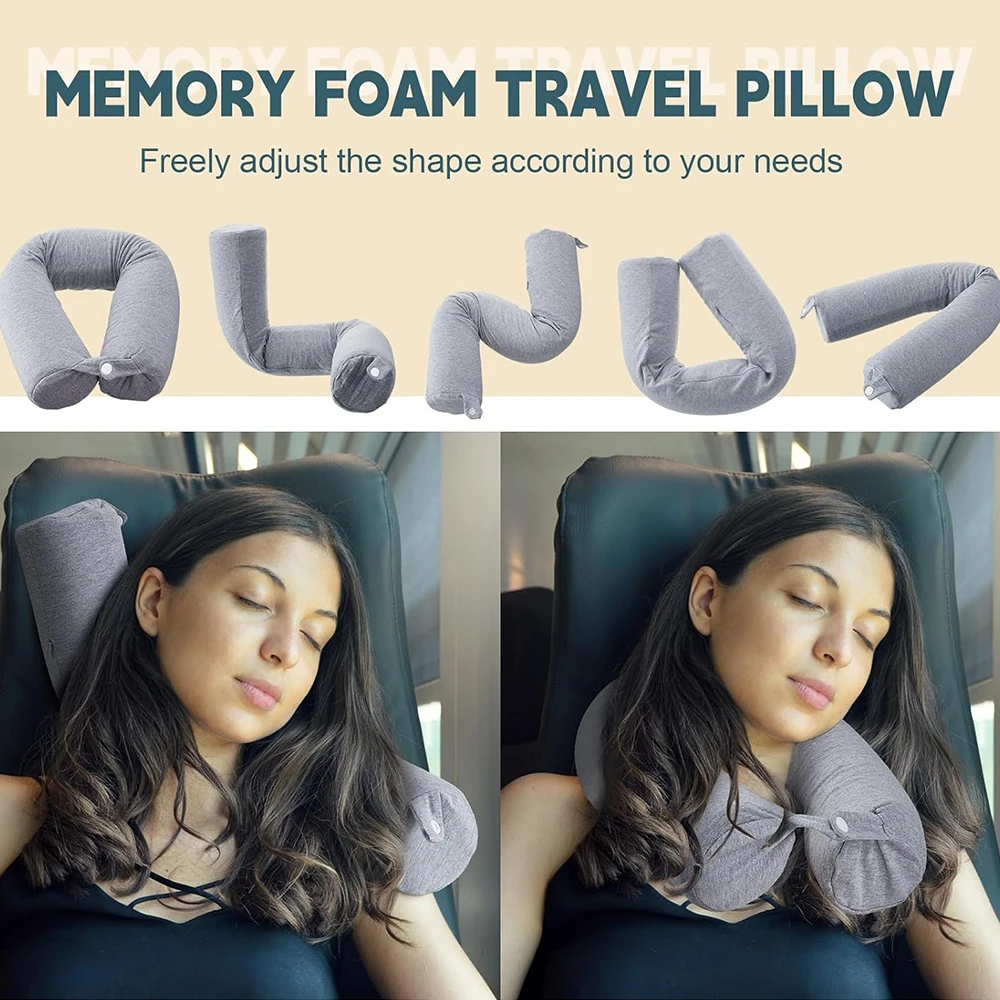 Twist Memory Foam Travel Pillow Neck Pillows with Storage Bag Chin Shoulder Support for Sleeping Bed Traveling Train Office Home