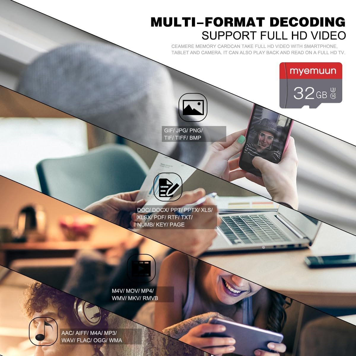 Two Memory Cards TF Card 32GB with Adapter, C10 U3 UHS-1 A1, for Camera/Smartphone/Drone/Dash Cam/Action Cam (2 x 32GB)