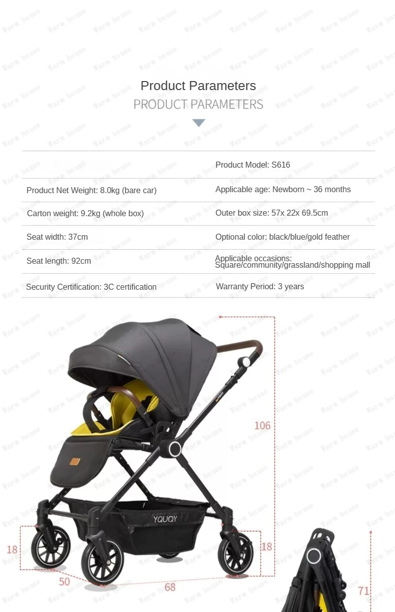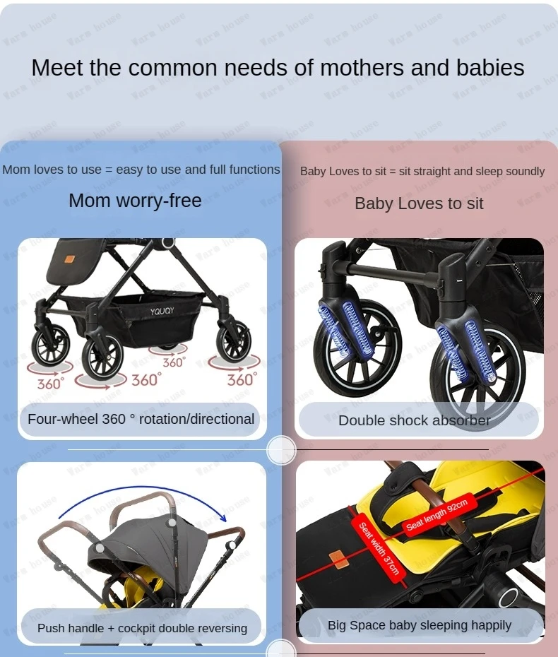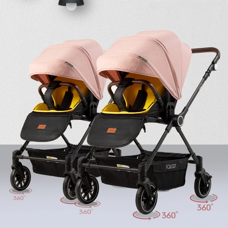 Two-way stroller for twins Lightweight foldable stroller Sitable and reclining high-view newborn stroller Deluxe baby car