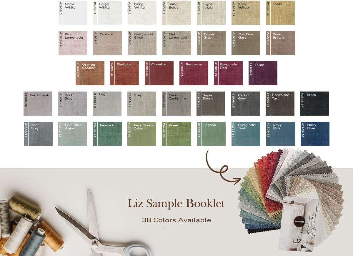 LIZ FABRIC: Sold per panel, not a pair. Made by Linen and Polyester. Heavyweight 350 gsm faux linen material. Skin-friendly, excellent colorfastness.