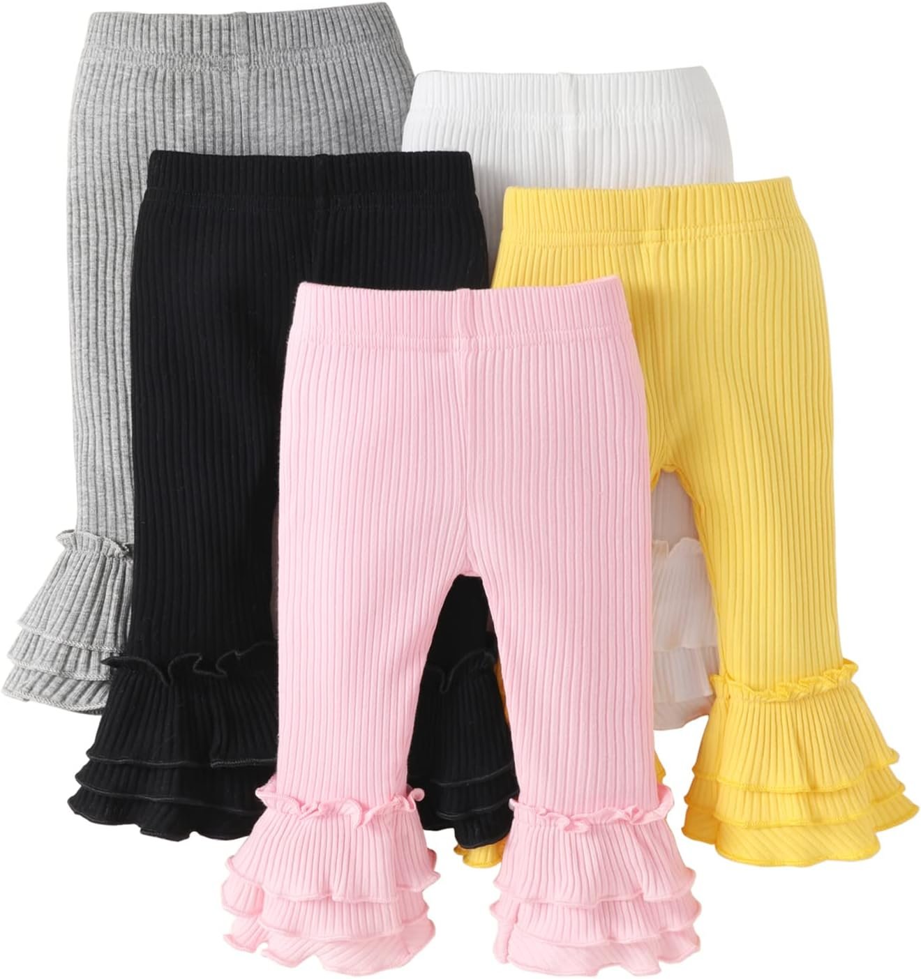 U·nikaka Toddler and Baby Girl Stretchy Flare Pants with Ruffle Fleece Pants and Leggings 5-Pack