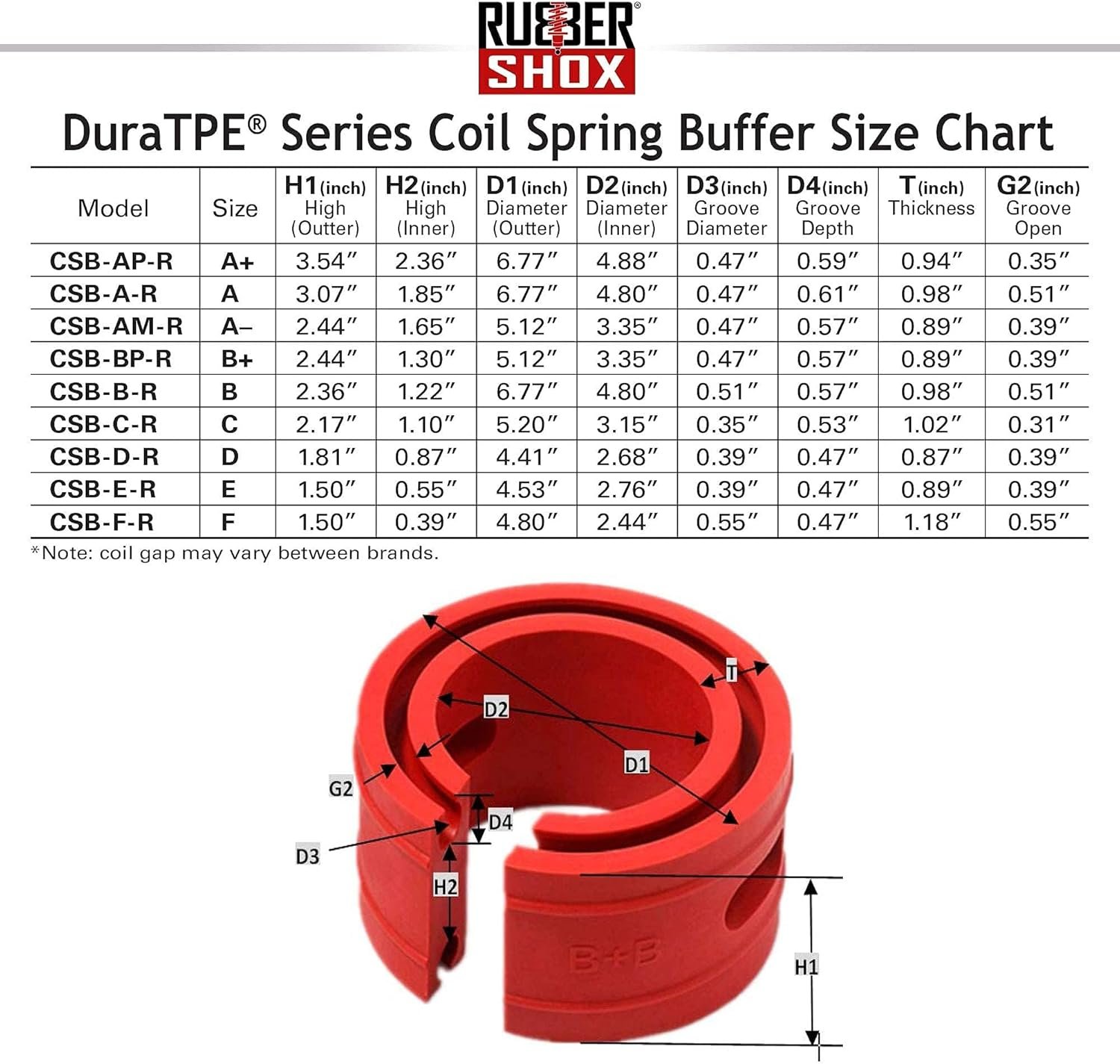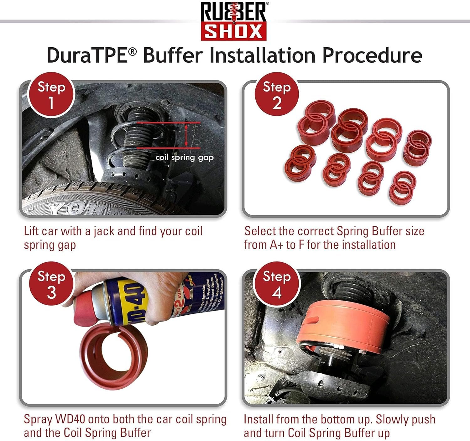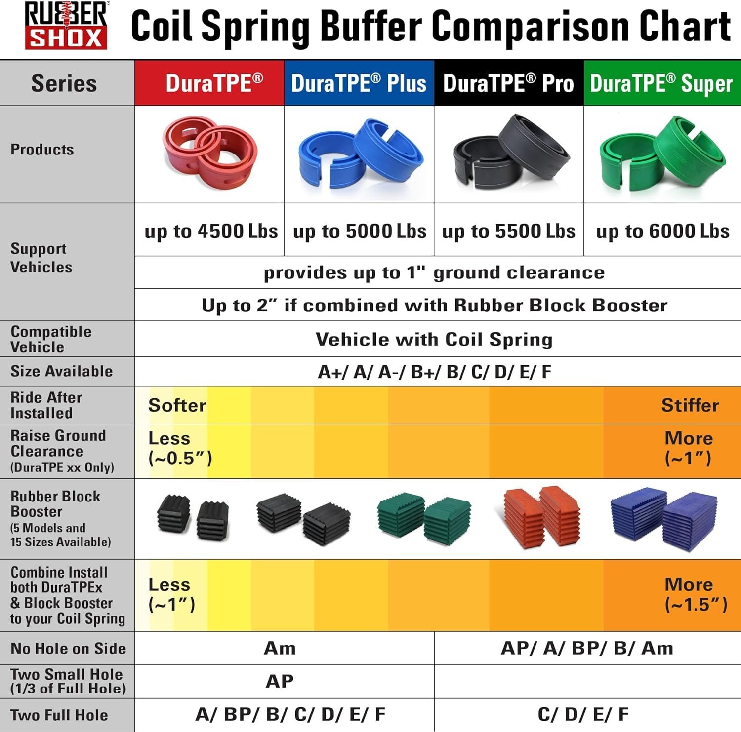 U.S. RubberShox DuraTPE Series Front-Rear Car Coil Spring Buffer Cushion/Automotive Suspension Shock Absorber Retainer Performance Booster Kit Universal Type A-F Vehicle Auto Parts (CSB, A+)