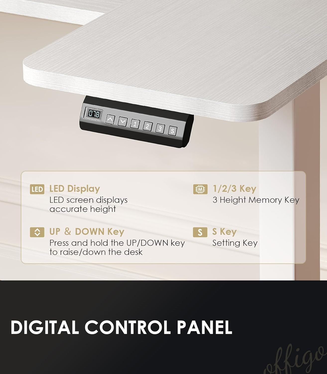Electric Height Adjustment: The height adjustable U-shaped stand up desk allows you to customize using height from 28.4″ to 46.5″ by using the 3 preset electric buttons for optimal comfort. With just one touch, you can easily switch between sitting and standing positions