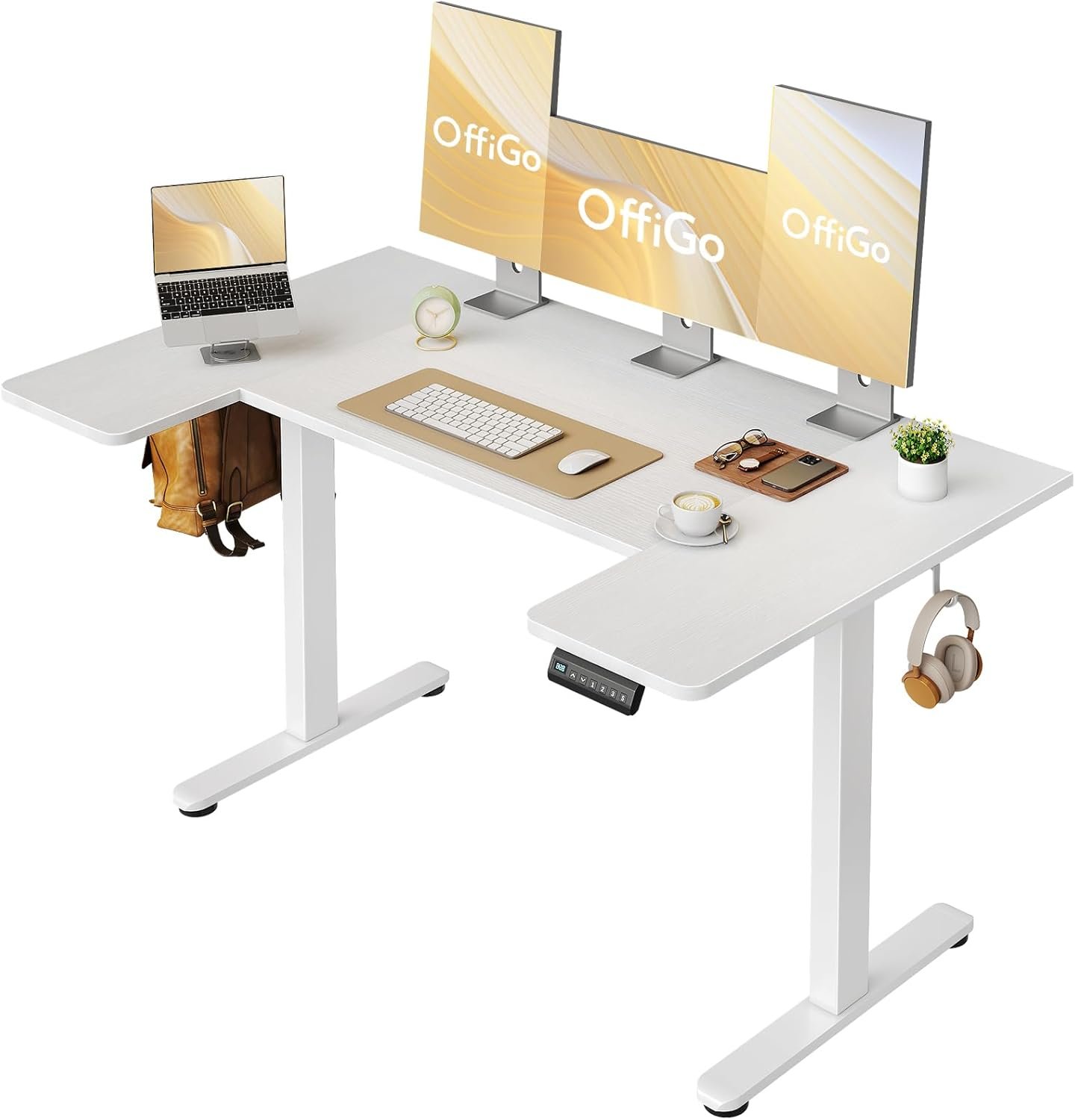 U Shaped Electric Standing Desk, 55 Inch Height Adjustable Sit Stand Table, Writing Computer Desk for Home, Office, Workstation, White