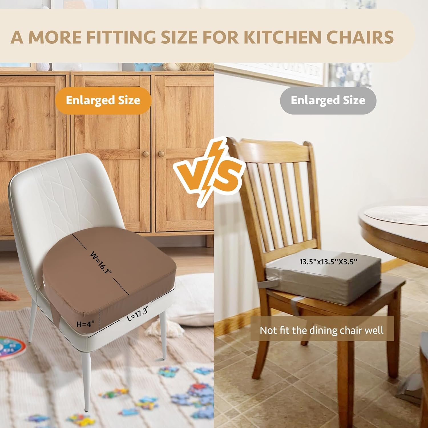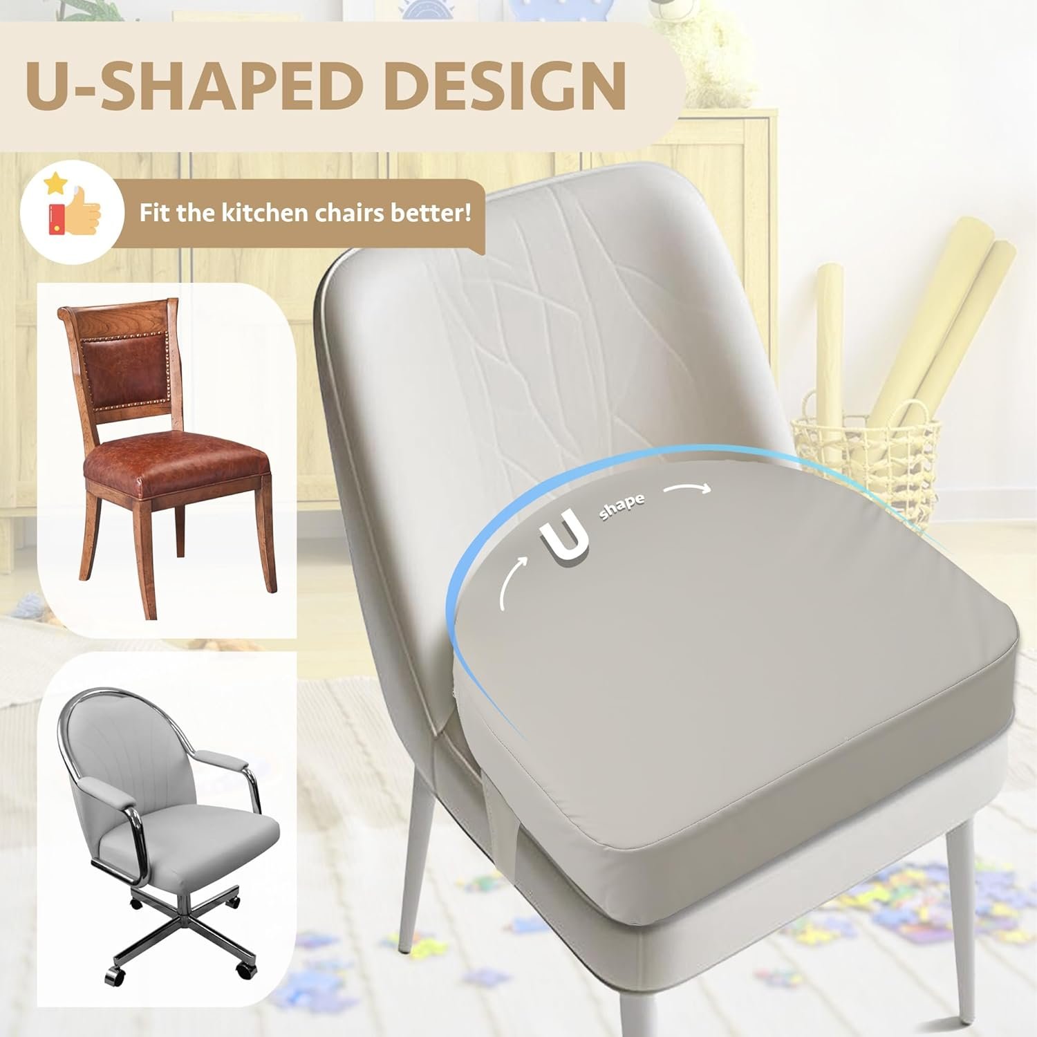 U-Shaped Toddler Booster Seat for Kitchen Chair (Big Size) Dining Table, Portable Waterproof PU Material Kids Booster Seat with Safety Buckles, High Cushion for Travel with Non-Slip Bottom