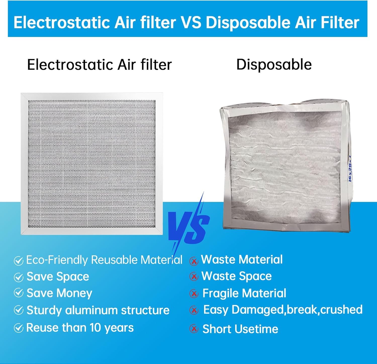 [Durable and Long-lasting] The UBeesize Electrostatic Air Filter is built to last. Made with an aluminum frame, it can withstand strong winds without deforming or breaking. This means you won’t have to replace your air filter as frequently, saving you time and money in the long run